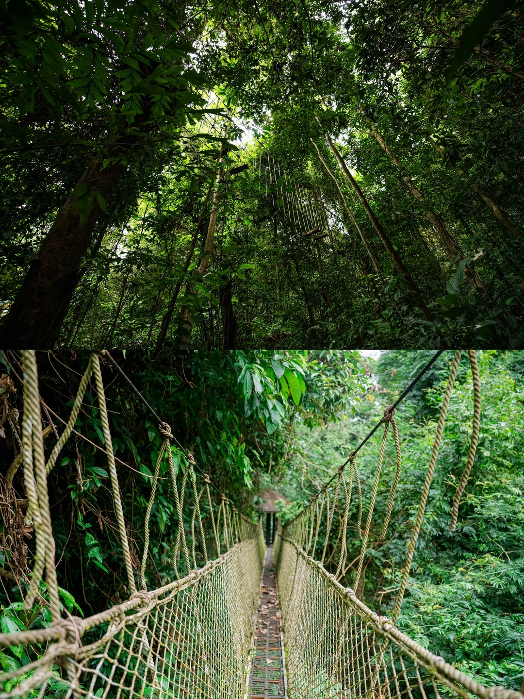 ✅树冠走廊:500米高空走廊架在望天树之间,脚下是悬空的,眼前是整片雨林在脚下“流动”,胆小慎入但超爽!
