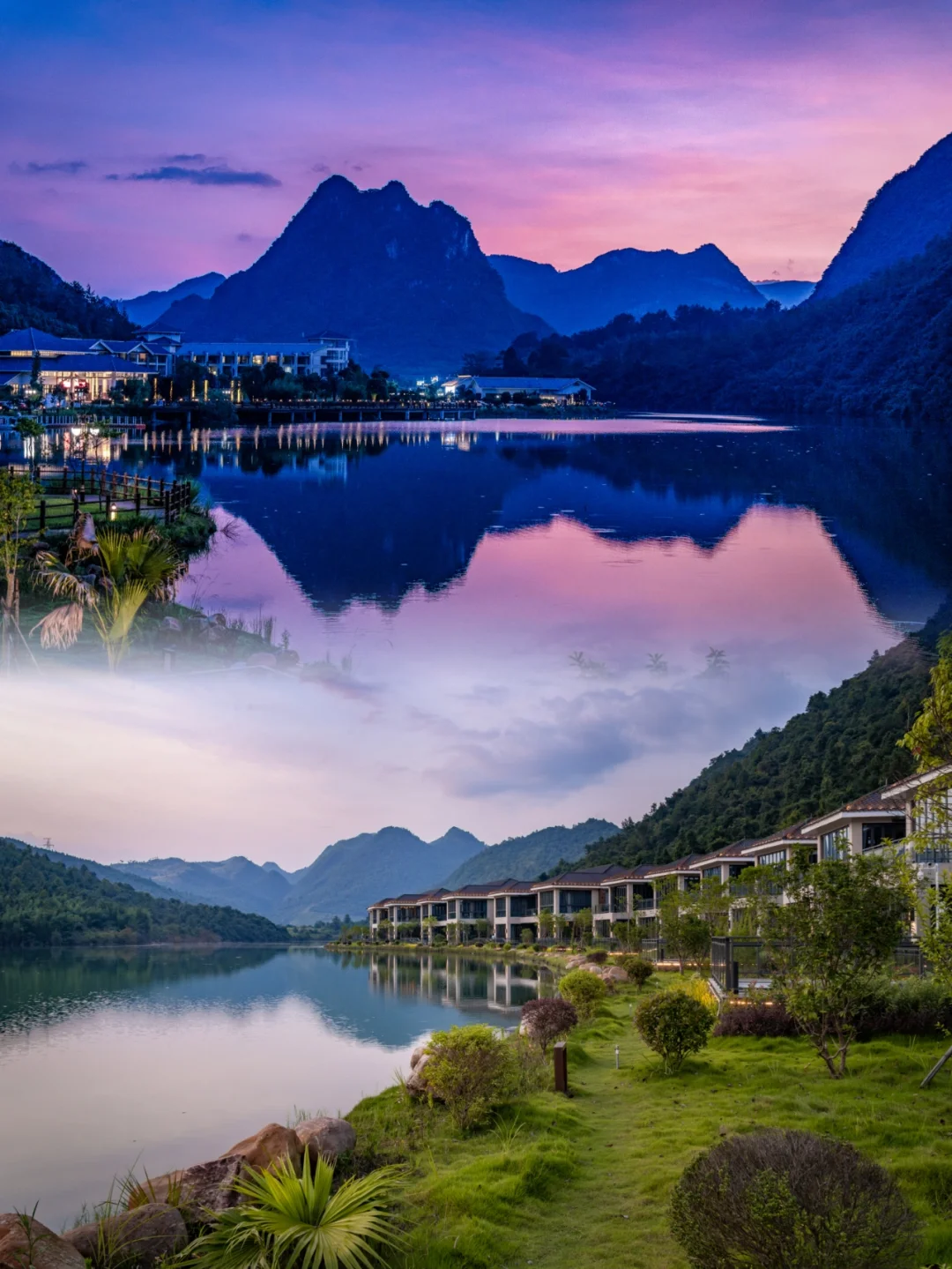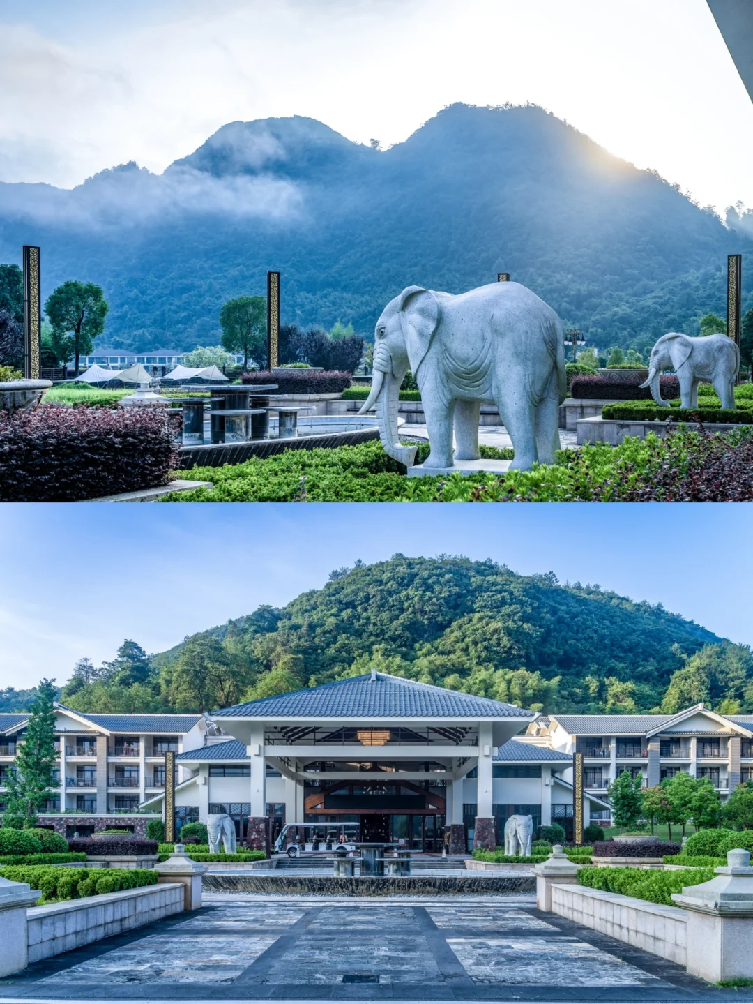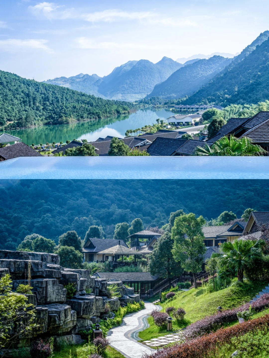 🌟酒店非常有设计感,山屿湖别墅群以南岭山脉的南麓葱郁林海为画布, 11 栋精心设计的独栋别墅布局于绵延青山绿水中很有东南亚度假村的感觉。