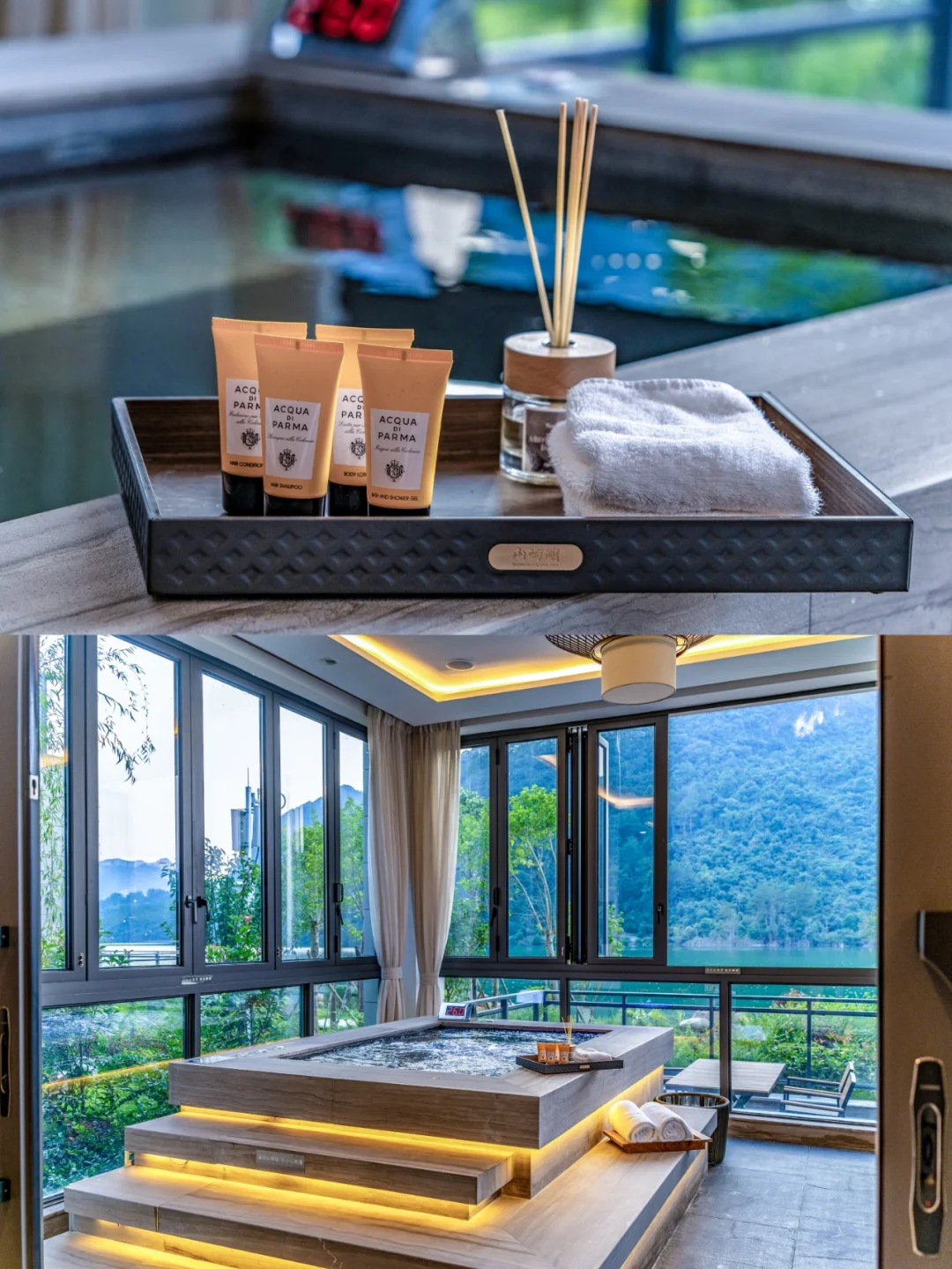 🌟 入住的山屿湖别墅分上下两层,一楼带私家冲浪池,怎么凹造型都不怕尴尬;二楼阳台可以看夕阳,湖景的日落让人沉醉。