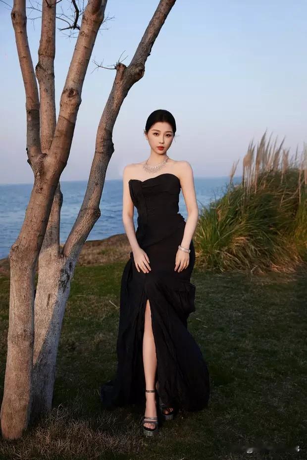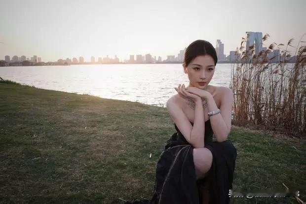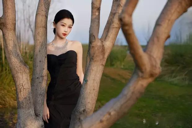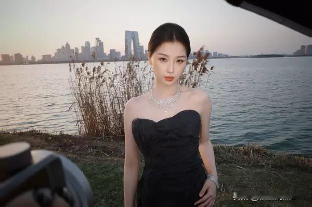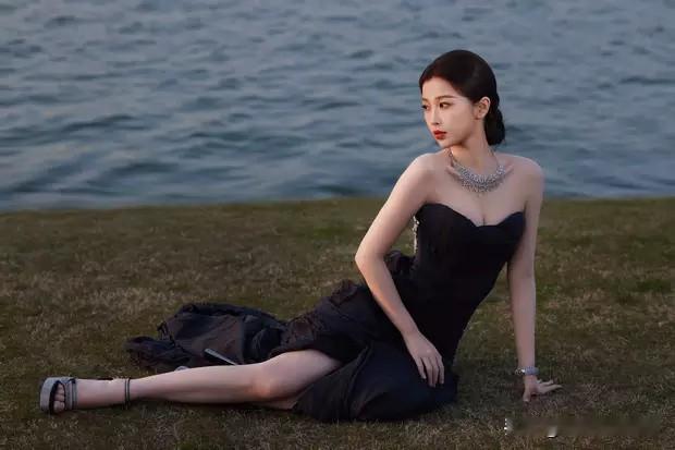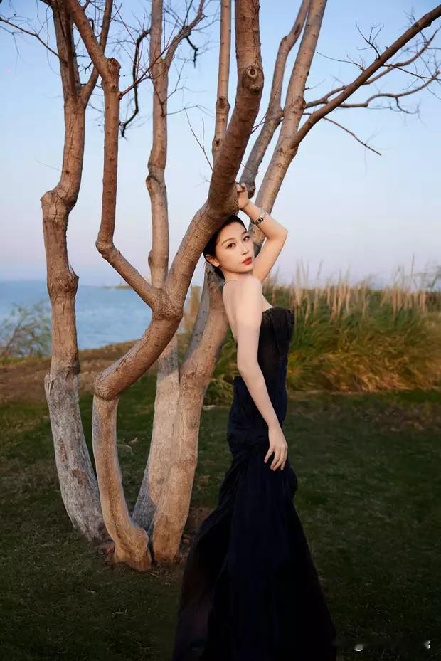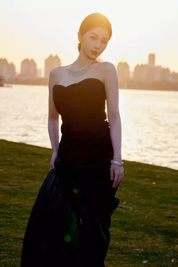 夕阳余晖下,虞书欣黑裙加身,凹凸曲线与白皙美背共绘性感画卷