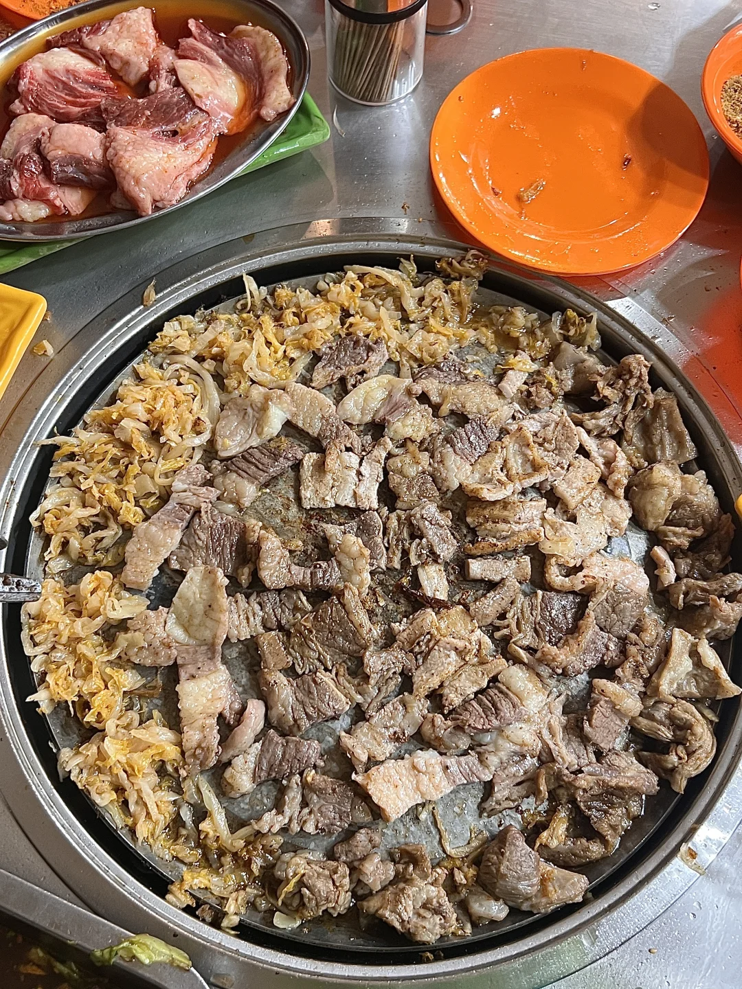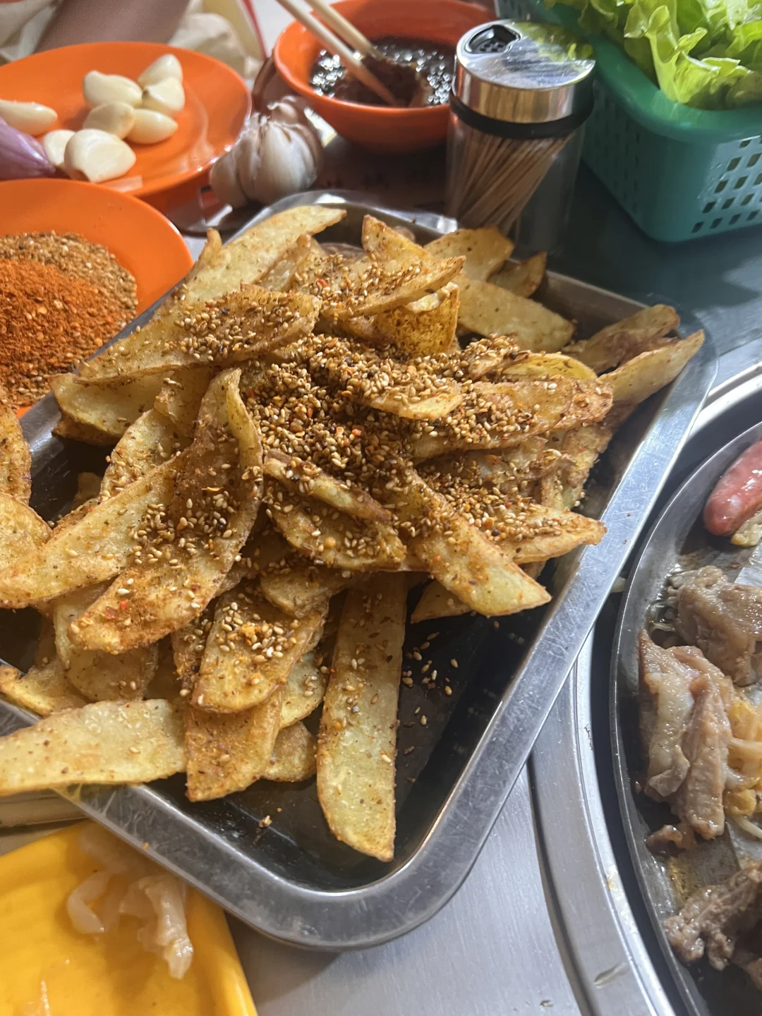 这绝对是我在三亚的烤肉白月光! 肉质都很新鲜,很喜欢牛上脑还要五花肉 炸土豆片跟吃薯条一样! 还有酸辣大拌菜一定要点,特别清爽开胃!