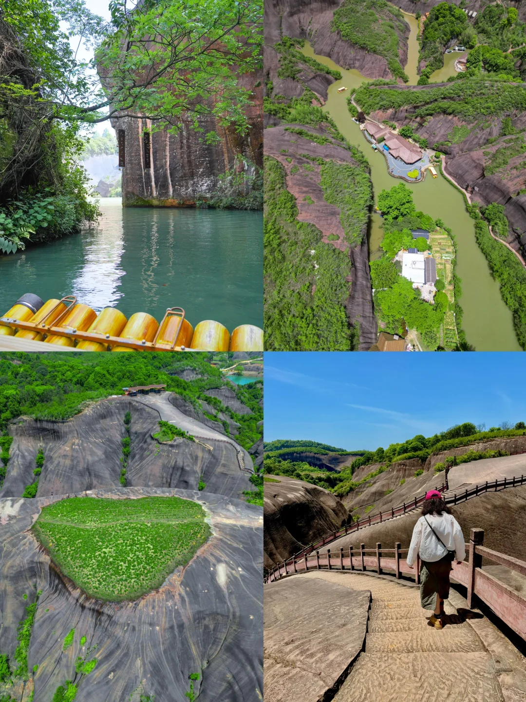 ✅飞天山:离市区不远,丹霞地貌绝了!红岩赤壁层层叠叠,峡谷洞穴超有神秘感。买套票(含船票)能坐船游翠江,换个角度看山水超震撼,拍照分分钟出大片!