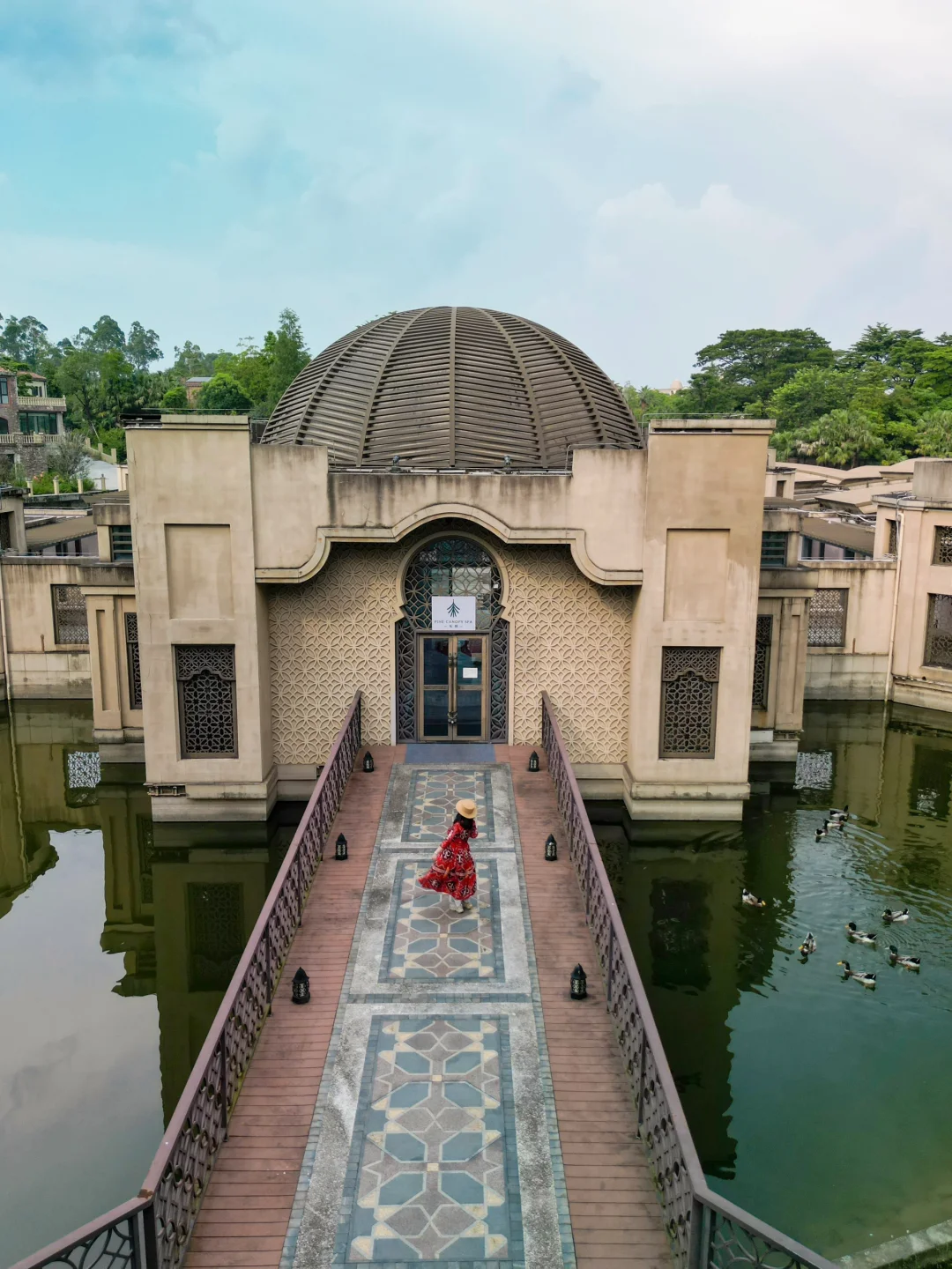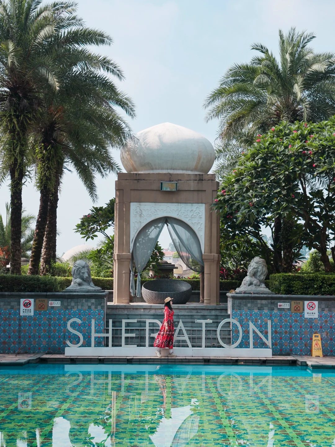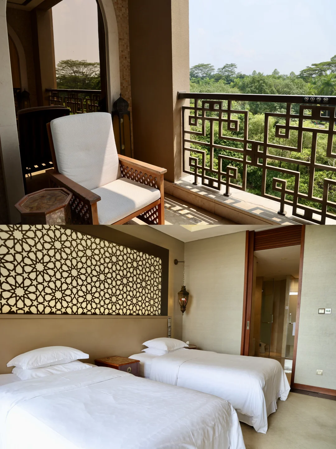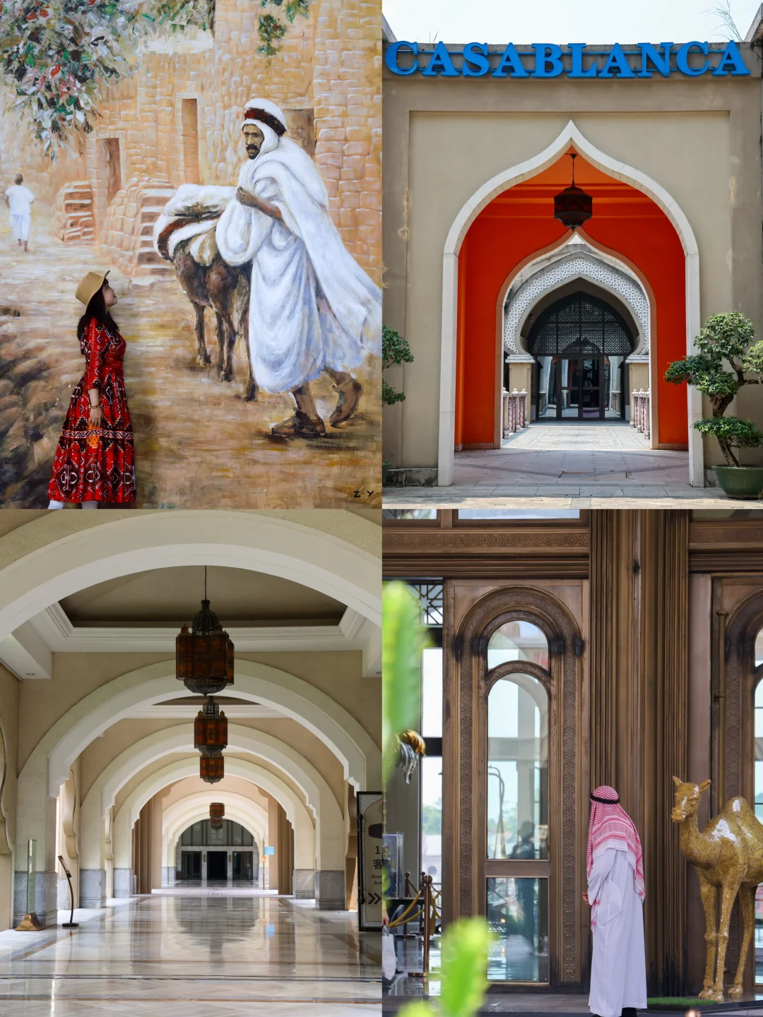 🧞‍♀️神灯藏着未尽的魔法 🦚孔雀抖落满身流光 🌵沙漠的燥热与宫殿的华丽在此交织 明明在广东却像闯进中东童话 ——这不是迪拜,而是藏在广东的“一千零一夜”秘境:清远狮子湖喜来登度假酒店。 💥 沉浸式阿拉伯体验 ✅ 踏入酒店就仿佛穿越:仙人掌沙漠景观,长袍阿拉伯礼宾躬身相迎,穹顶鎏金映着巨型水晶灯的璀璨,2米多高的金色阿拉丁神灯,每一步都是一千零一夜🫅童话中的场景。 ✅ 52㎡的客房把中东美学焊死了:床头铜质灯具是复刻中东fanoos灯笼的样子,阿拉伯挂毯上全是异域风情,连立柜上的花纹都满满的阿拉伯特色,氛围感直接拉满! ✅ 傍晚坐着小火车追夕阳,湖面金光粼粼的样子,像极了动画片里茉莉公主和阿拉丁坐着飞毯飞过的那片湖泊🌅 ✅ 盛宴标帜西餐厅的自助餐:丰富的海鲜、甜品不说,还混搭了老广最爱的靓汤和阿拉伯风情的卷饼,让舌尖先一步环游中东~ 📸 朋友圈抢C位秘籍 1️⃣棕榈岛水疗中心:从高处俯拍,花砖桥通向伊斯兰圆顶建筑,宫廷剧女主就是你 2️⃣摩洛哥泳池:蓝绿花纹瓷砖在水面下,树影晃在池底,假装在北非度假谁看出来? 3️⃣盛宴西餐厅油画墙:10米巨画藏着阿拉伯市井烟火,站旁边像走进画里 4️⃣健身中心长梯:抬头那刻,穹顶光影全成你的背景板 5️⃣卡萨布兰卡餐吧:橘白尖拱门太出片,神秘感直接拉满 原来住进童话,根本不用飞10小时✈️ 暑假来清远就能体验茉莉公主所向往的自由与快乐!