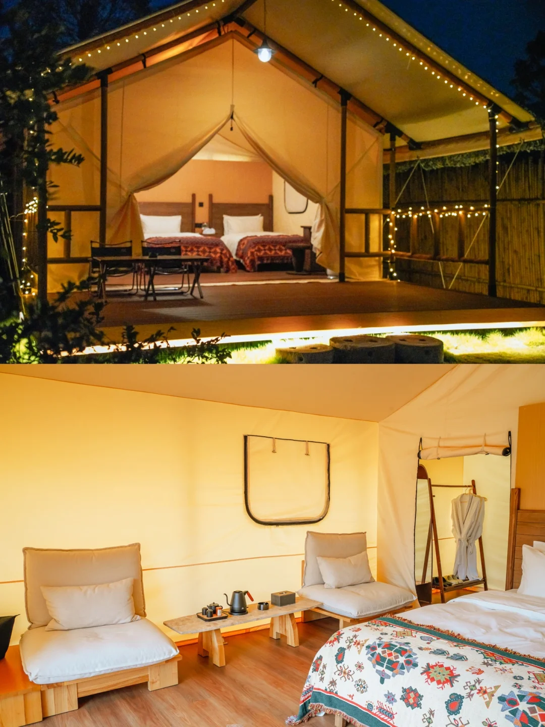 ⛺️本次入住了珪月花园套房,很有特色,高端美学露营设备和帐篷内所需配置,所有方面都是一应俱全。房间配有管家24小时待命,有欢迎水果和独立私密院子,以及独立卫浴、空调、洗浴用品,拎包即可入住。住在帐篷里还能体验晨观日出、夜观星辰的美景。