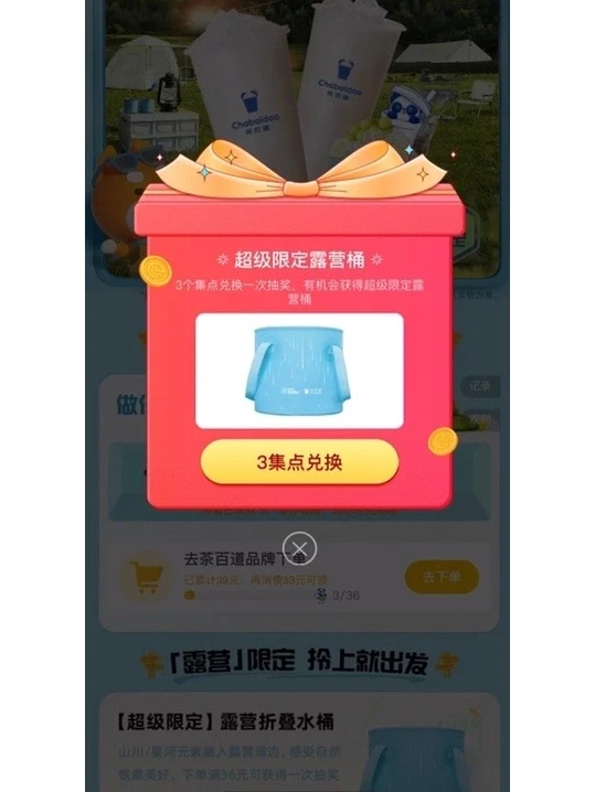 🌟饮料类:除了日常携带饮料外,像我这种喜欢喝奶茶的。直接上饿了么搜🔍:超级限定露营季,下单了一个好喝又便宜的茶百道套餐。