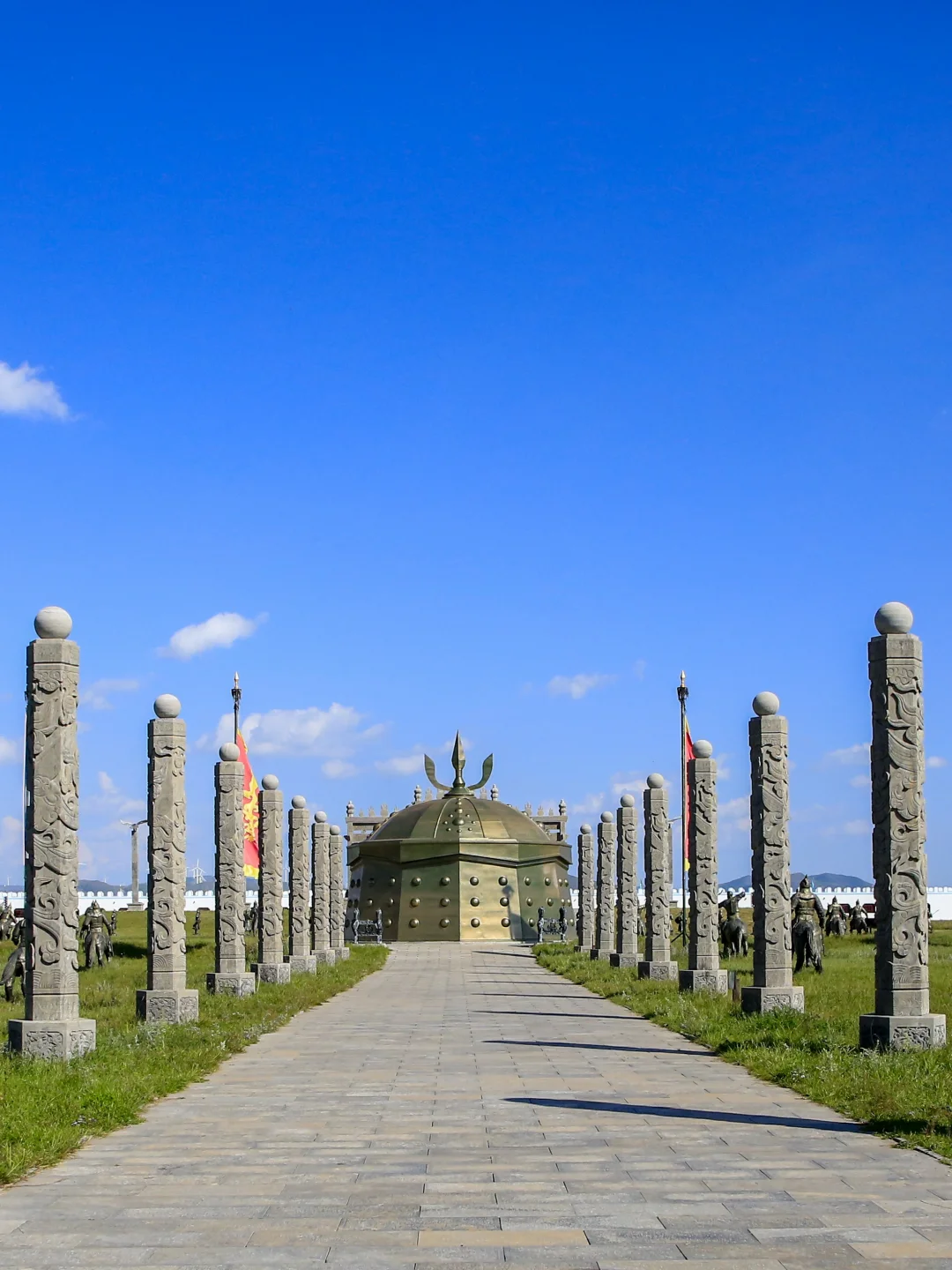 ✅ 穿越千年行宫:一进景区,成吉思汗的铁帐群超震撼!前面5个铁帐是办公地,后面寝殿尽显王者风范,仿佛一秒穿越到金戈铁马的时代。
