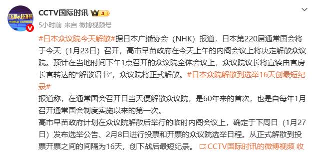 第220届通常国会开幕当天,高市早苗政府直接解散众议院,下午1点正式落地!
