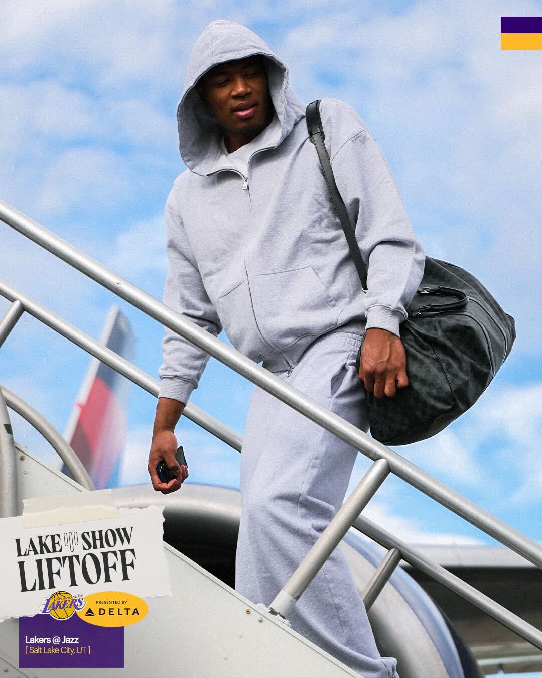 虎扑11月23日讯今日,湖人社媒晒出球员奔赴爵士客场的登机照片。