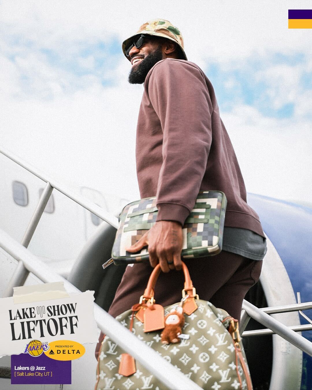 湖人众将奔赴爵士客场,詹姆斯面露微笑十分开心