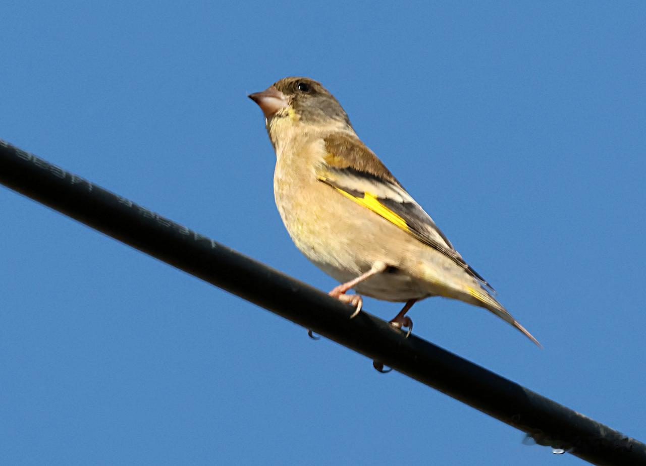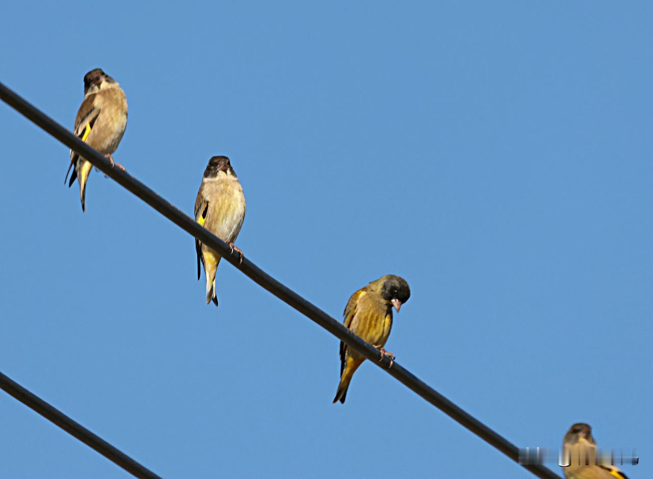 首见成群结队的金翅雀! 以前在山中拍黑头金翅雀,最多两三只出现。今天在滇池之滨一农田上方的电线上,居然见到了十多只在一起。这还是我第一次观拍成群的黑头金翅雀!