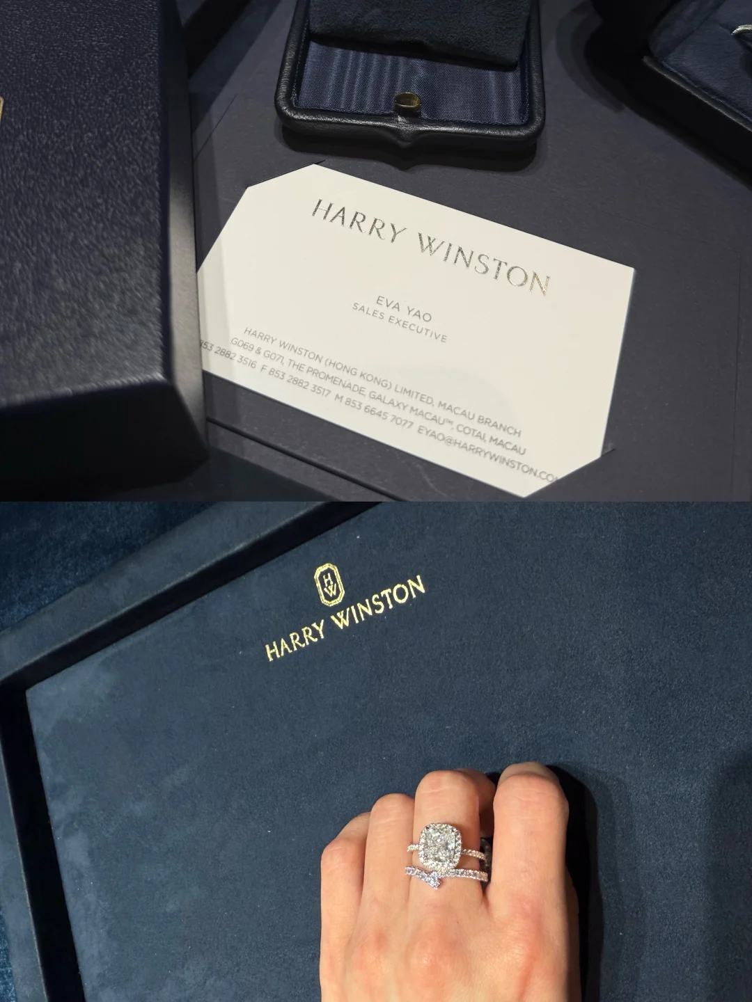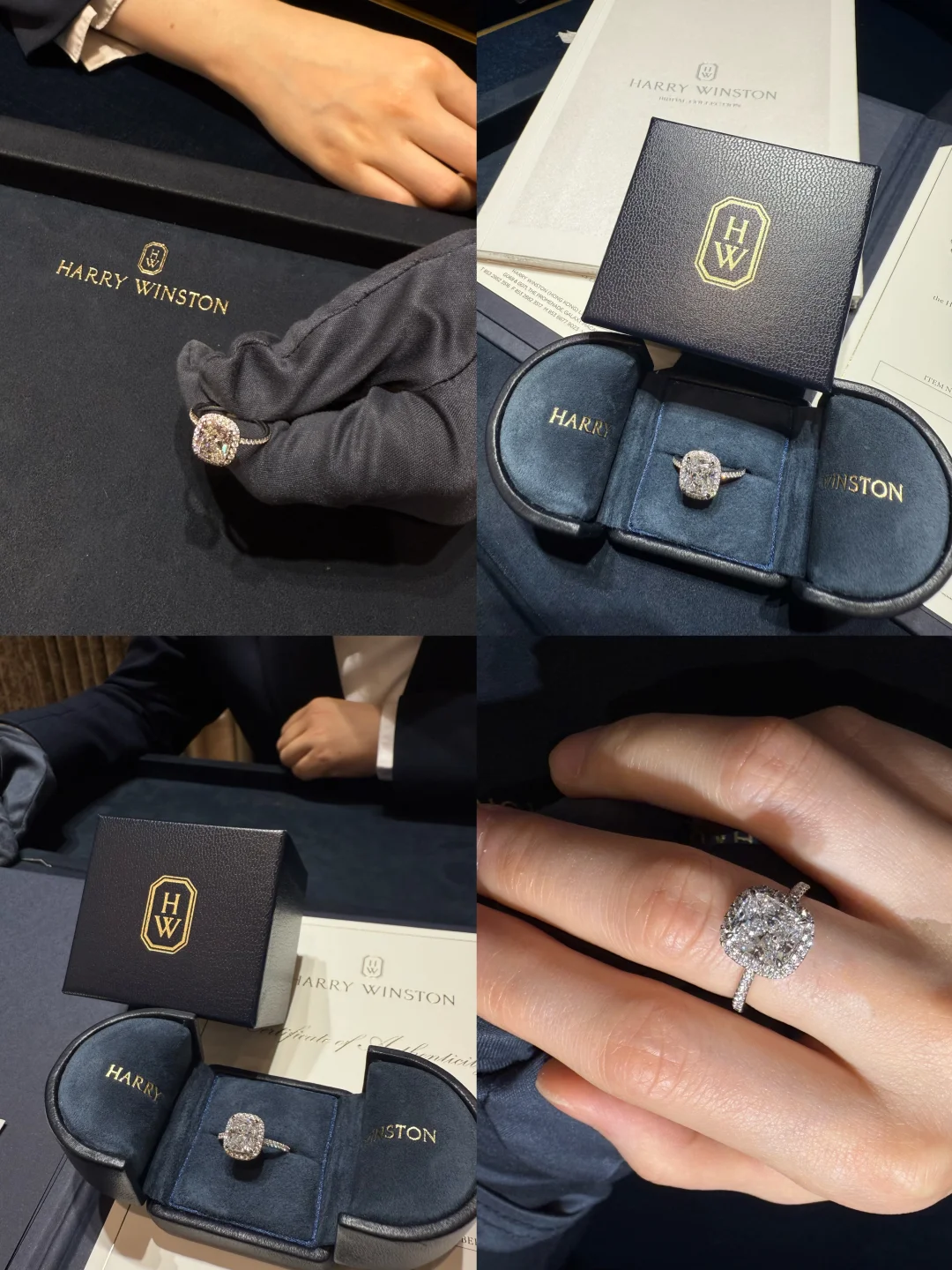 之前在国内专柜去看了好几家钻戒,都没能下定决心,前段时间在澳门玩几天,在银河hw家,试了不同款,感觉还是喜欢这个偏方圆的枕型款,会有一种体积感更大一些的感觉,适合我的小胖手!而且他们家片子里的模特也是这款,感觉也很上镜 所以,p人🛍️真的是很随缘了! 再次感谢耐心帮忙解答一大堆啰嗦问题的Eva