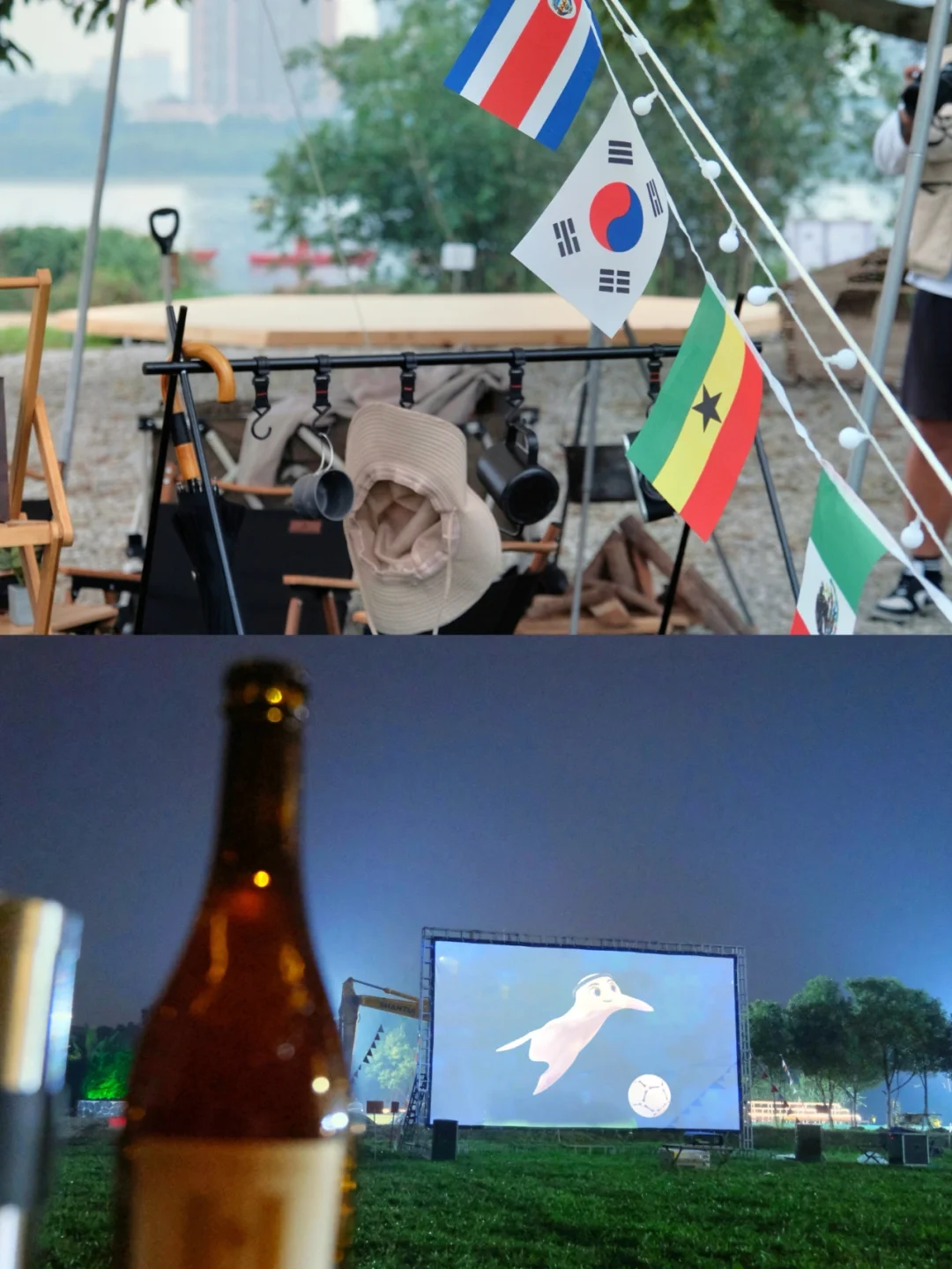 下午趁世界杯没开场前,三五好友可以现在草坪上来一场友谊赛,在挥汗如雨中沉浸式体验足球运动的快乐。六点开波,坐在户外高清投影大屏幕下看球,一群好友一起“哇,一起“唉”……有种亲近“世界杯现场”的气氛感。