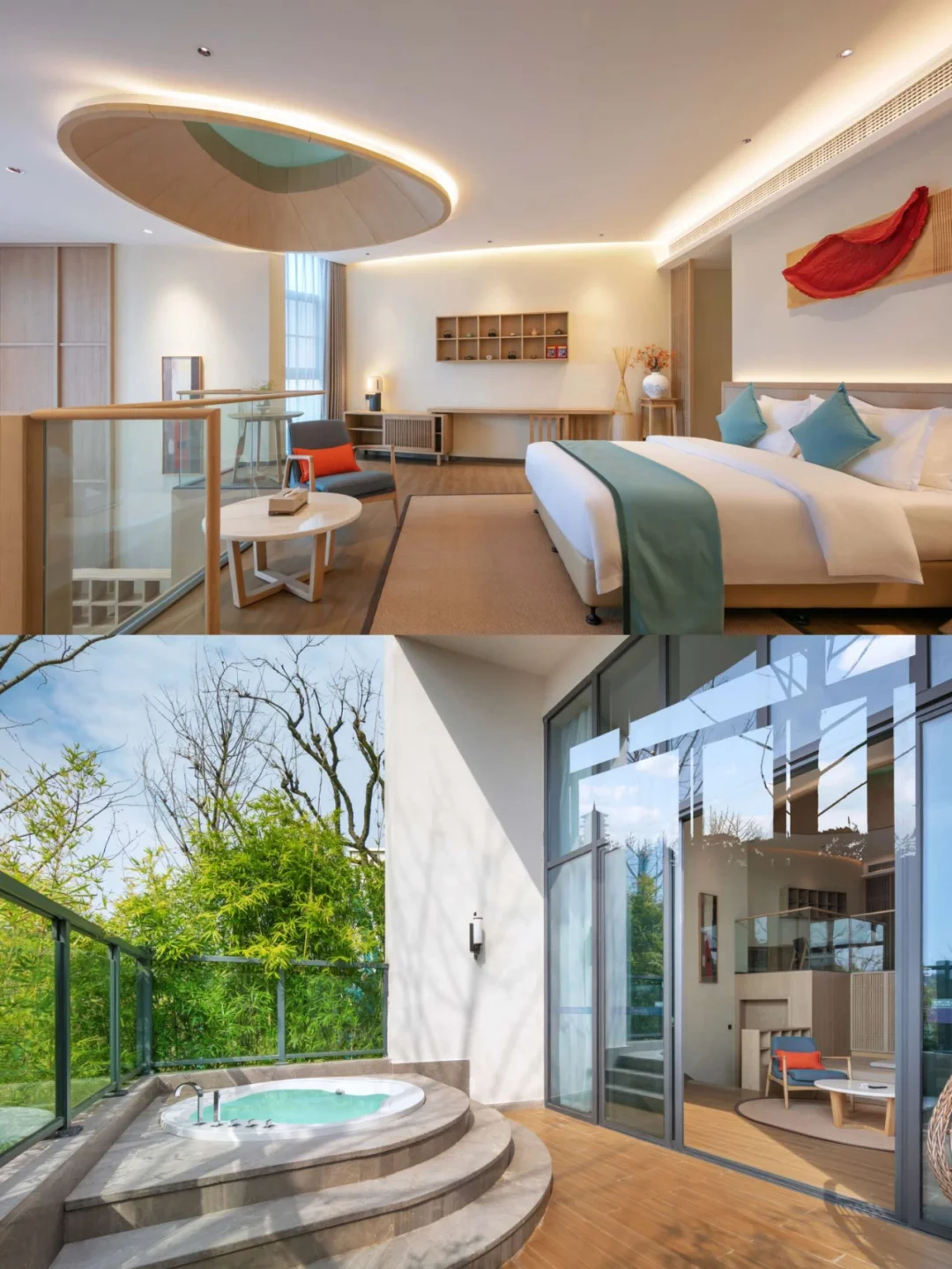 酒店紧邻茶圣博物馆,酒店客房设计独特,每一栋楼都背靠茶园、古树环绕,层楼叠院与湖光山色交辉相映,住在酒店里既有人在画中游的愉悦体验。