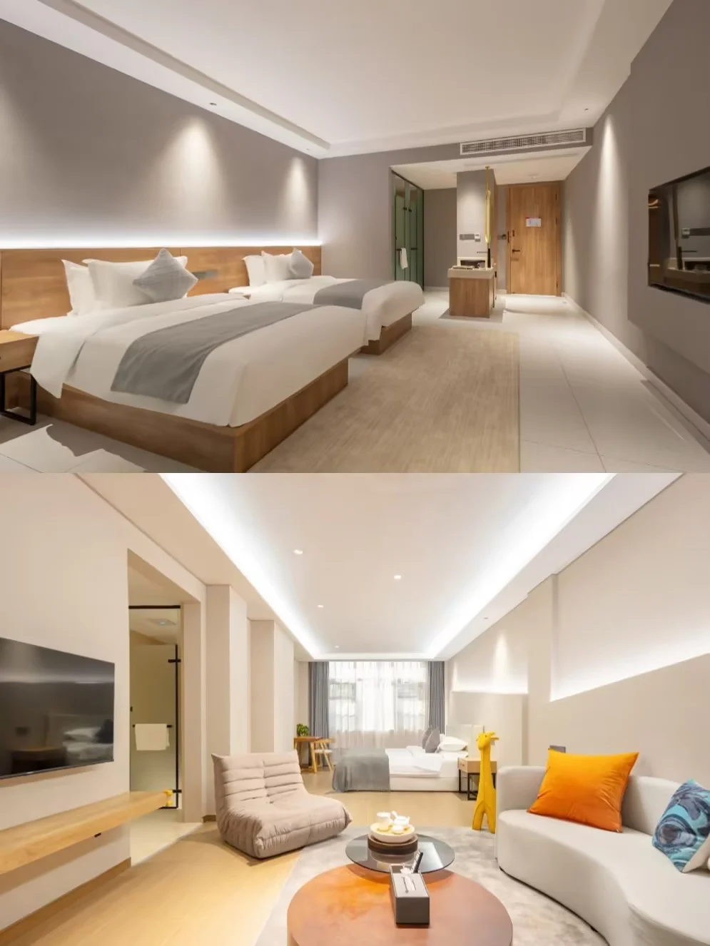 踏入同尘院,仿若闯入世外桃源。建筑外观融合现代简约与中式古典,白墙黛瓦在青山绿水环绕下,尽显古朴典雅,禅意悠悠弥漫在每一处角落。走进房间,宽敞空间搭配柔和灯光,温馨之感扑面而来。部分房间配备的观景阳台,木质桌椅摆放整齐,闲暇时坐在这里,泡上一壶当地香茗,抬眼便是连绵青山与澄澈蓝天,微风轻拂,惬意无比。
