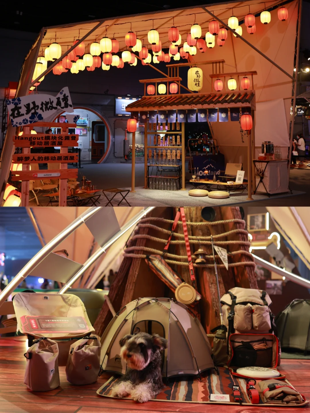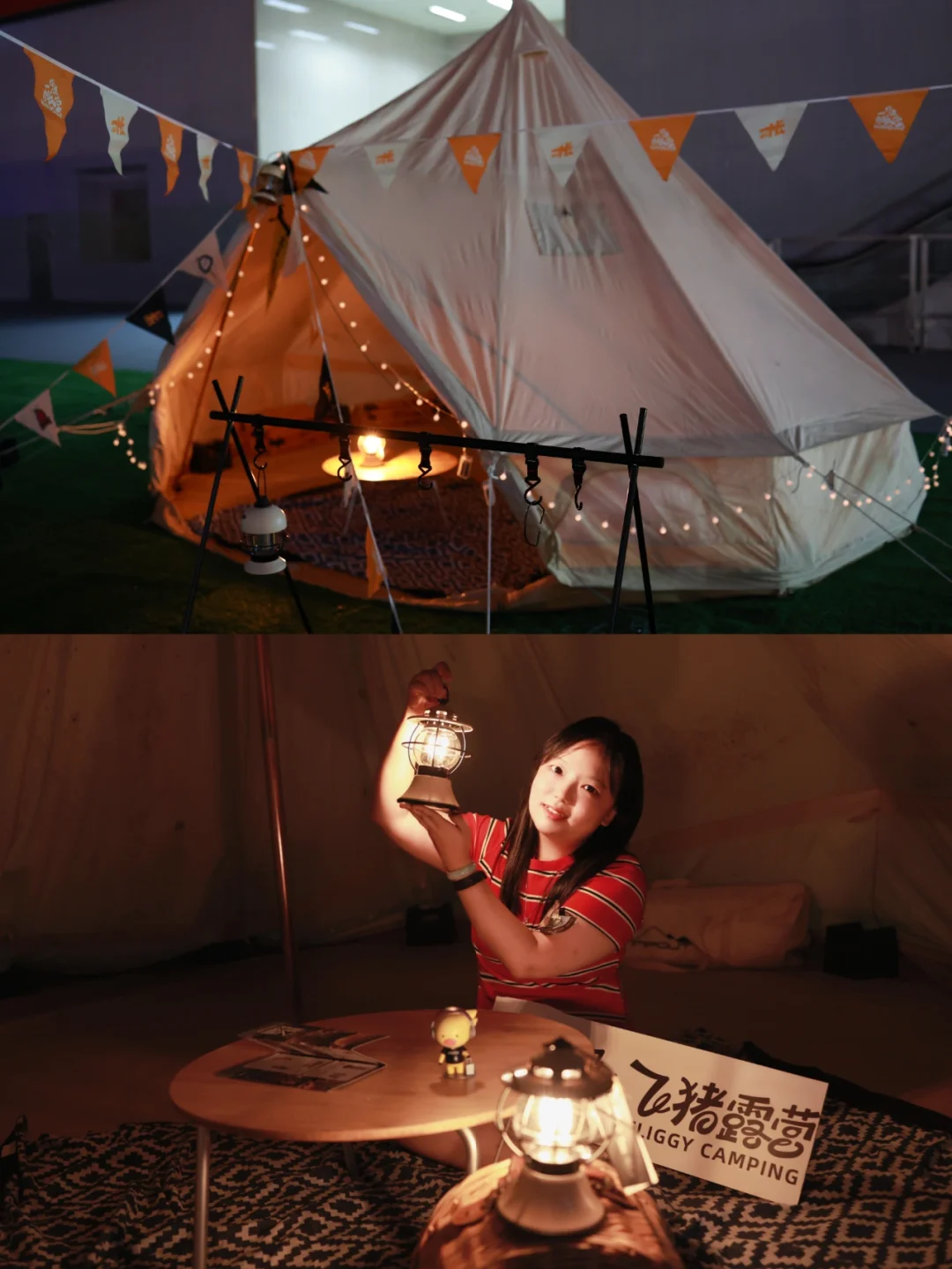 “明日驿站”是一个“飞🐷猪露营”主题的休闲区域。座椅幕布,围炉夜谈,户外休闲的气氛妥妥的拿捏了!带上收集到的饮料和食物,坐在营地里小憩一会,又能元气满满的投入逛展