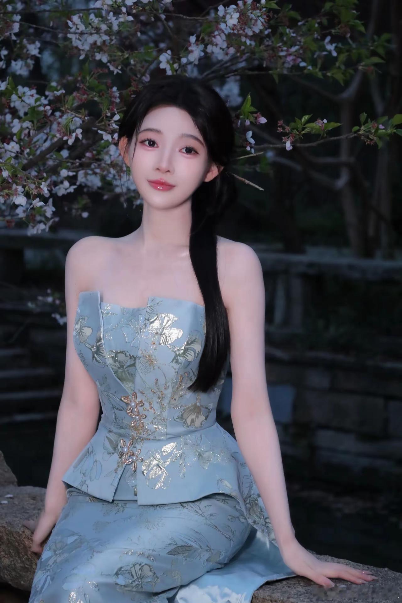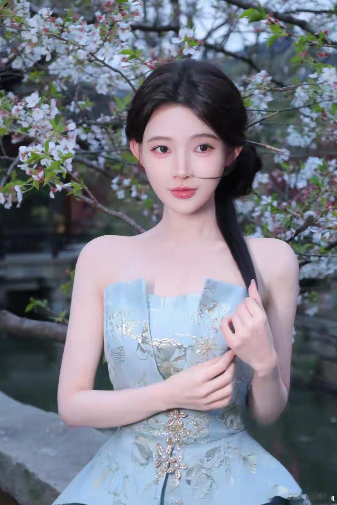 一个穿蓝裙子的姑娘坐在花前。不抽烟不喝酒就是好男人吗?