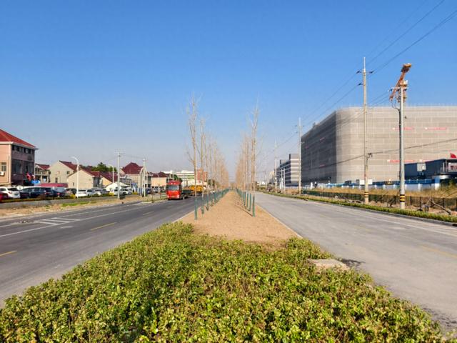 目前,宝钱公路的大部分中央隔离带、机非隔离带已经种上了绿化,中央绿化带有的路段采用乔木与小灌木套种的方案,呈现出郁郁葱葱、层次分明的视觉体验,而在与南北向道路交汇处路口附近的隔离带绿化则采用铺床草坪的方案,这样不仅使宝钱公路的绿化呈现出多样性和观赏性,更兼顾了路口的交通安全,保证驾驶员和行人的视野开阔不受影响。