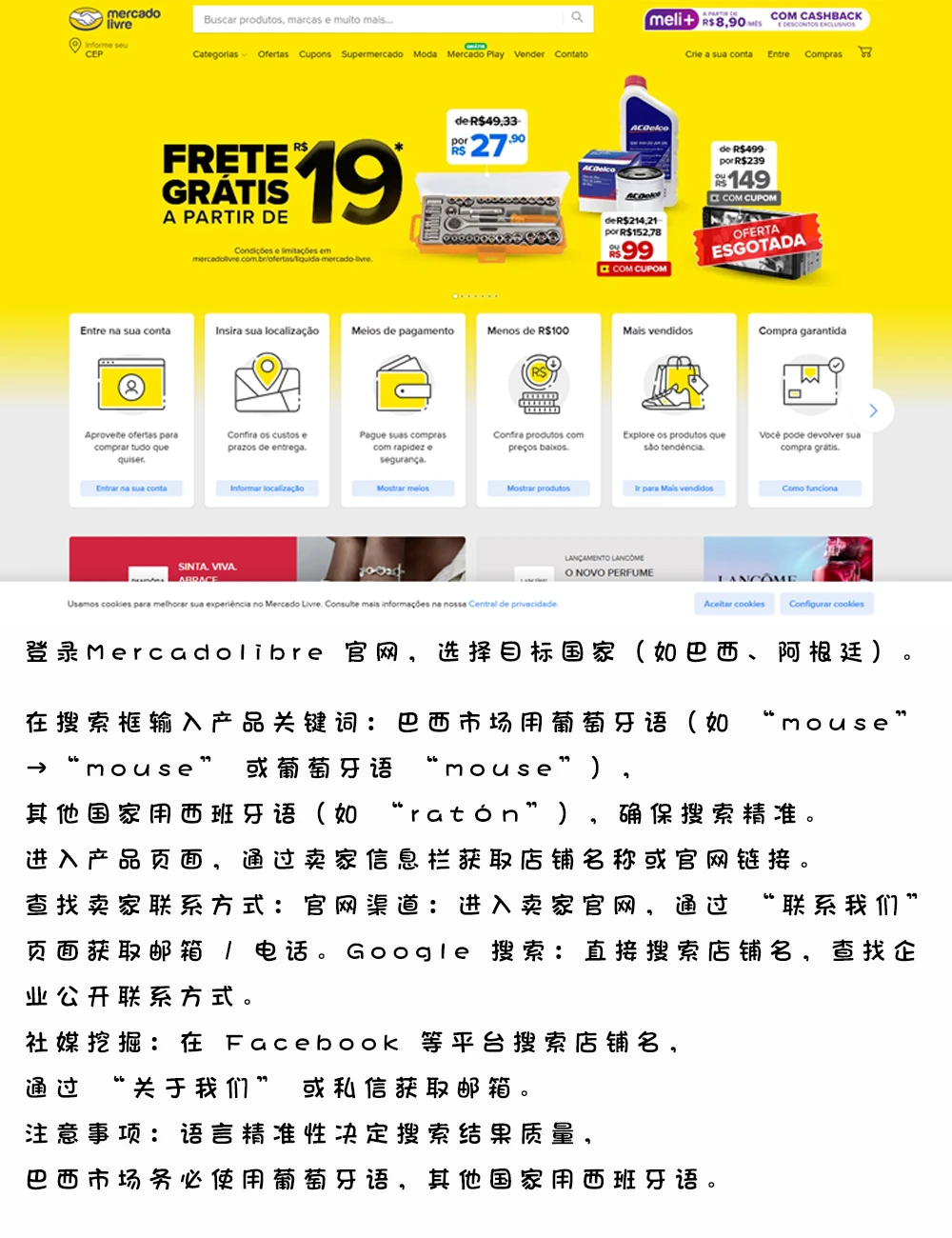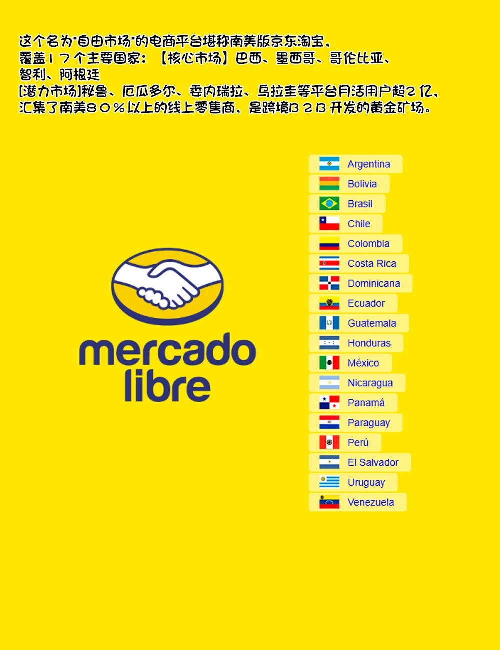 这个名为\"自由市场\"的电商平台堪称南美版京东淘宝,覆盖17个主要国家:\n【核心市场】巴西、墨西哥、哥伦比亚、智利、阿根廷\n【潜力市场】秘鲁、厄瓜多尔、委内瑞拉、乌拉圭等\n平台月活用户超2亿,汇集了南美80%以上的线上零售商,是跨境B2B开发的黄金矿场。\n\t\n查找卖家联系方式:\n官网渠道:进入卖家官网,通过 “联系我们” 页面获取邮箱 / 电话。\nGoogle 搜索:直接搜索店铺名,查找企业公开联系方式。\n社媒挖掘:在 Facebook 等平台搜索店铺名,通过 “关于我们” 或私信获取邮箱。\n注意事项:语言精准性决定搜索结果质量,巴西市场务必使用葡萄牙语,其他国家用西班牙语。\n\t\n三、避坑指南\n• 警惕虚假店铺:查看开店时间、评价数量、产品线一致性\n• 语言陷阱:西班牙语和葡萄牙语不能混用\n• 时区管理:建议在北京时间21:00-24:00跟进回复\n\t\n【工具包推荐】\n• 翻译插件:Toucan(实时网页翻译)\n• 辅助工具:Yokdo、Appollo(买家公司名称或者域名在上边查到决策人联系方式)\n• 邮箱验证:Hunter.io\n通过这套方法论,某家居用品供应商3个月内开发了12个南美客户,成交率达27%。\n关键在于:精准定位+本土化运营+持续跟进,欢迎在评论区交流实战经验~\n\t\n