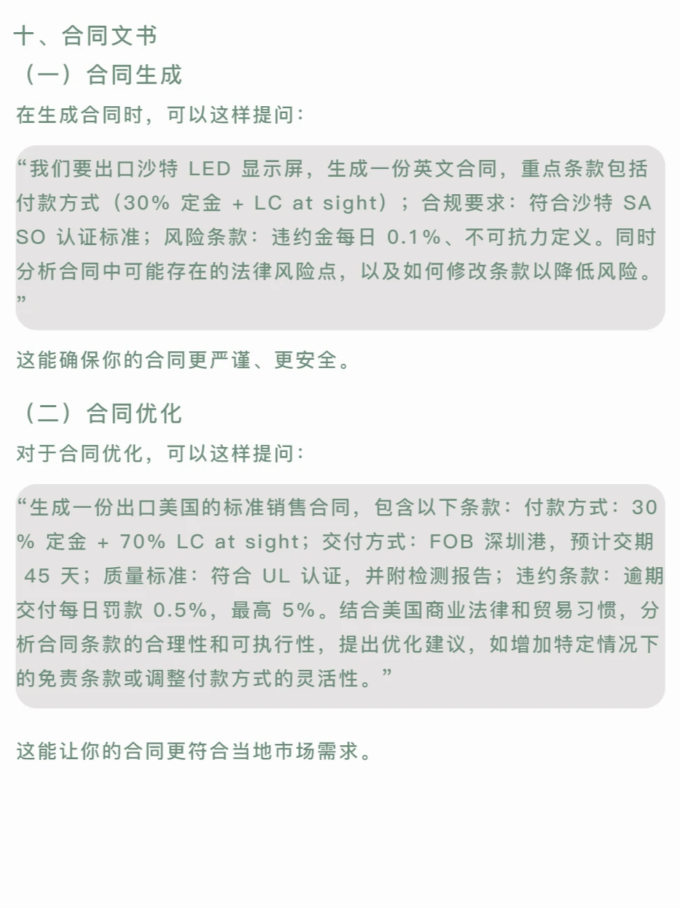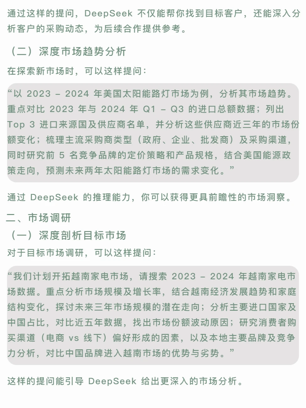 在外贸行业,DeepSeek 成为了从业者的新宠,被广泛应用于客户开发、市场分析、邮件优化,甚至汇率预测等环节。但不同人使用效果差异明显,关键在于提问方式。DeepSeek 作为推理型 AI,依赖精准信息和问题生成回应。今天,我将分享一份涵盖外贸全流程的 DeepSeek 高阶指令模板,涉及 12 个常见场景,帮助你充分挖掘 AI 潜力,提升外贸效率。另外,如果你还没注册海外公司,现在是个好时机,点击 注册了解注册流程和优势,让你的外贸业务更上一层楼。