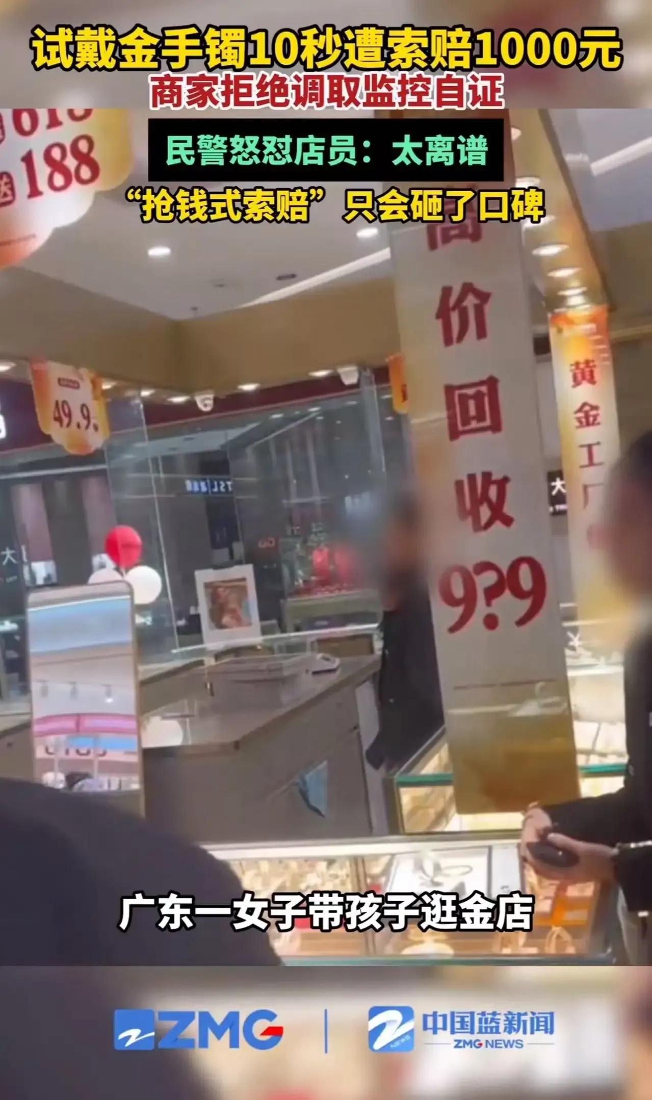 妈妈带孩子去金店试戴手镯,结果戴了不到10秒就被店员索赔1000元!这究竟是怎么回事?难道戴一下手镯就要赔这么多钱吗? 近日,一位妈妈带着孩子去金店挑选饰品,店员热情地推荐了一款金手镯,并让孩子试戴。然而,孩子刚戴上不到10秒,妈妈就准备拿下来,没想到店员却突然变脸,声称手镯被戴变形了,要求赔偿1000元。妈妈当然不乐意了,觉得这简直是无理取闹,于是双方发生了争执。就在此时,民警赶到现场,了解情况后怒怼店员:“太离谱了,想钱想疯了吗?这样讹人!”原来,经过民警仔细查看,手镯并没有明显的变形痕迹,店员的行为明显是在讹诈。这一事件也引发了网友们的热议,大家纷纷表示这个民警太给力了,没有和稀泥,也没有因为报案就打半折,而是公正地处理了这起纠纷。 这起事件再次提醒我们,在消费过程中要时刻保持警惕,遇到不合理的要求要勇敢维权。同时,也感谢这位民警的公正处理,让我们看到了正义的力量。大家对此事有什么看法呢?快来评论区留言讨论吧!买金镯子 戴金手镯 金手镯回收价格