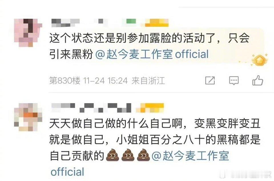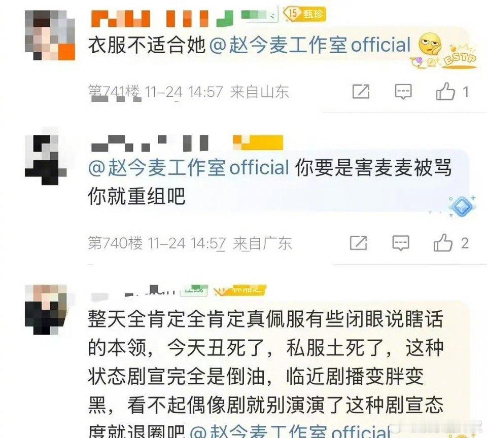 赵今麦工作室评论区现况如下↓其实麦麦剧照和营业照还挺好看的,就是在秀场,红毯和给