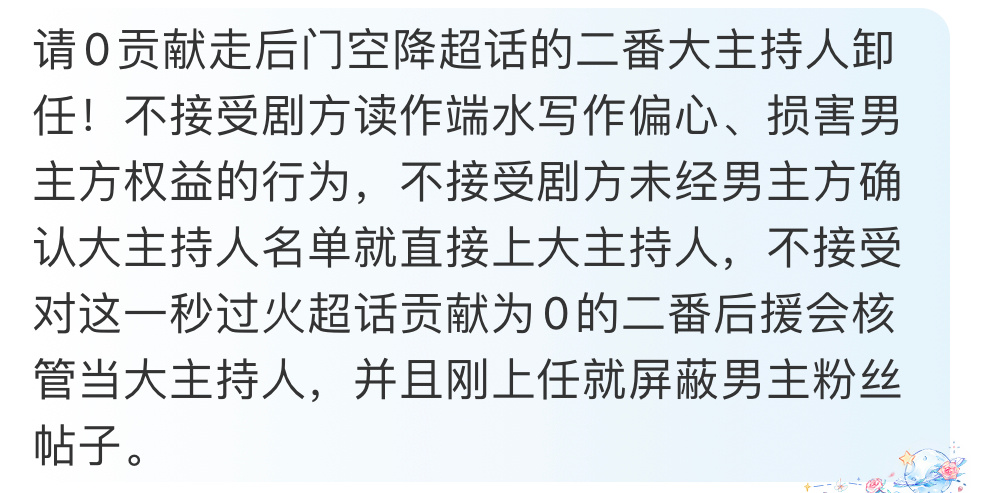 这一秒过火超话突然空降王楚然大粉主持人,张凌赫粉丝在向剧组维权!