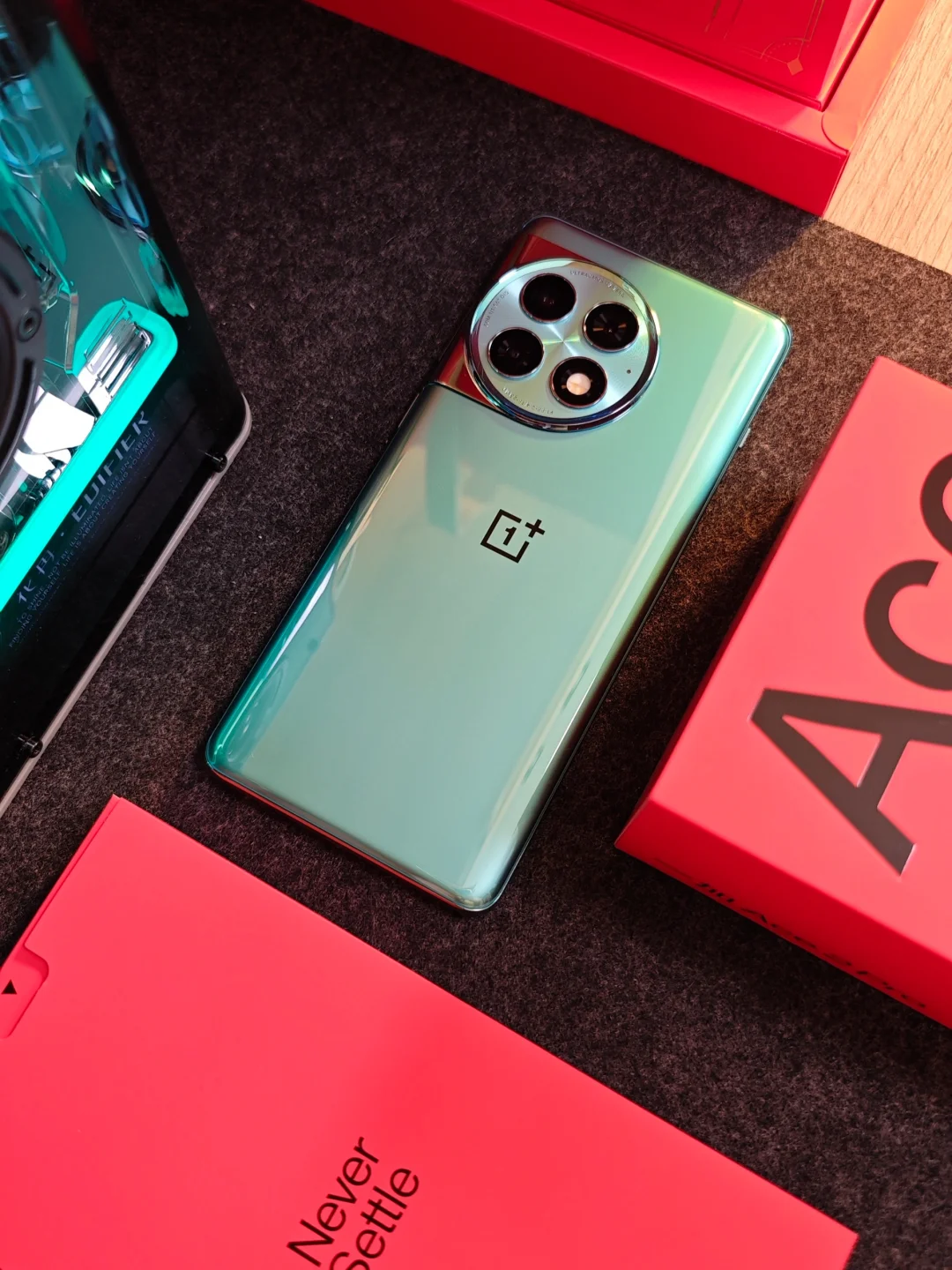 一加 Ace 2 Pro开箱体验,上手的是24GB+1TB极光绿版本,外观传承于一加11和一加 Ace 2,质感十足,还加入了玻璃冷雕和立体蚀刻2个全新工艺,令手机更独特更有力量感。