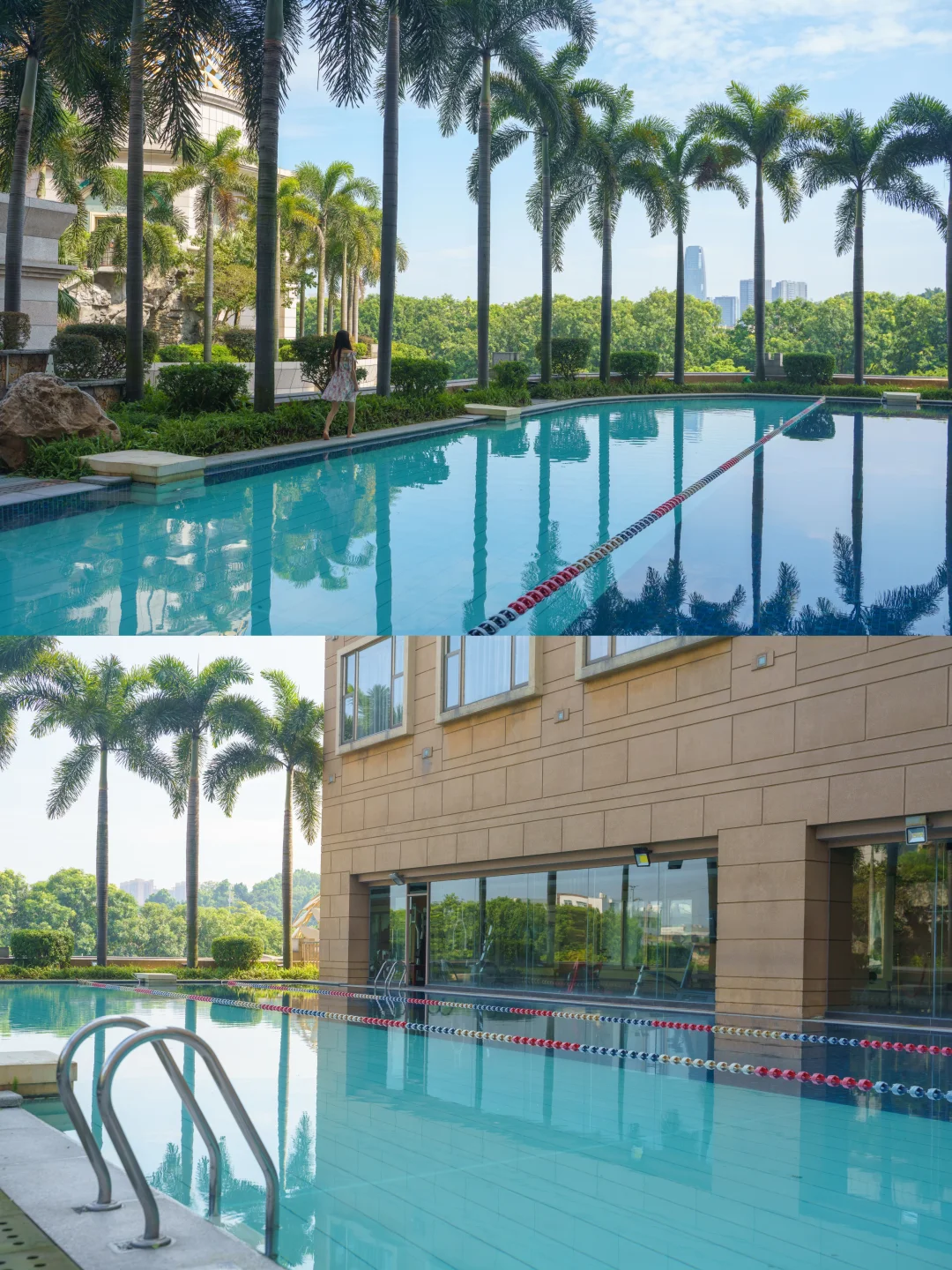 藏在花园里的清凉秘境🌴碧蓝池水倒映欧式建筑,度假感直接拉满,出片率100%!