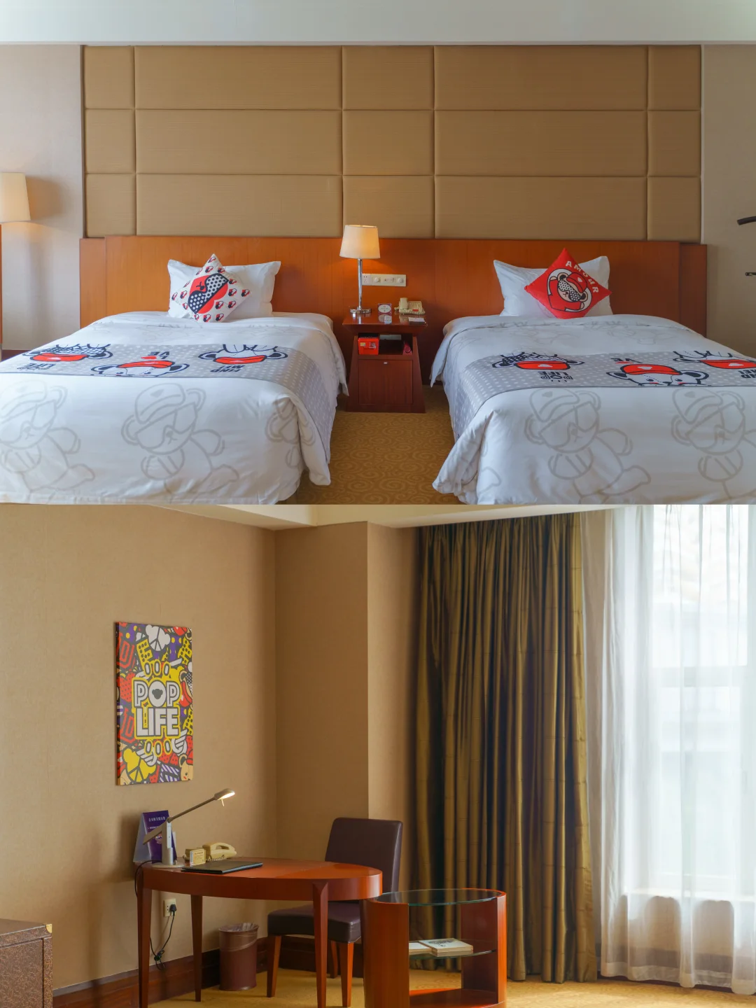 和闺蜜入住草莓熊主题房直接尖叫!🍓从云朵般的床品、松软的抱枕,到精致的小摆件,全是软萌的草莓熊元素!躺在超软大床追剧,或是坐在观景阳台看车水马龙,这才是度假的正确打开方式!