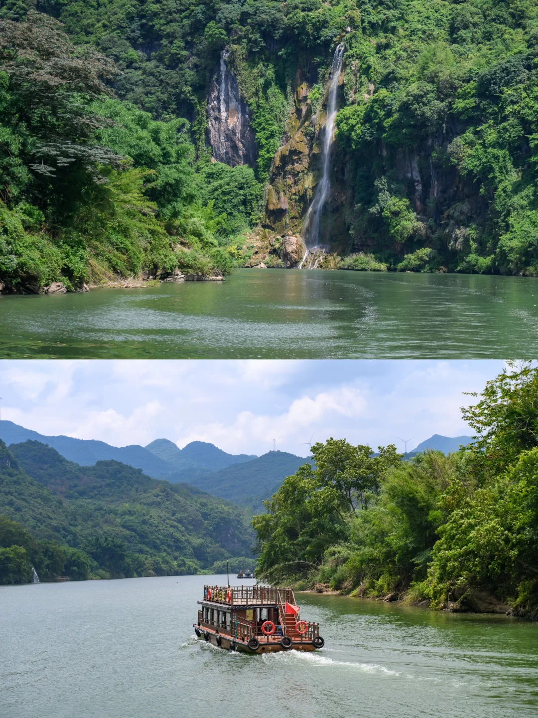 想躲开人潮过个惬意暑假?\n清远连州‼️粤北这个超小众秘境,必须安排上!\n闺蜜组队人均500+\n两天一夜:溶洞探险、三峡泛舟,还能躺着放空,舒服到不想走\n🚘交通:从广州自驾3小时直达,高速一路顺畅,说走就走超方便\n📍闺蜜必打卡:\n🌟连州地下河\n藏着2.5亿年的地质惊喜!和闺蜜坐船穿过国内最大洞内瀑布群,抬头就是钟乳石\"银河\",俩人直接惊叹连连~\u00a0这里天然恒温18℃,夏天来这儿避暑,空调费都省了,凉爽到不想离开!\n🌟湟川三峡\n和闺蜜坐船漫游,羊跳峡、楞伽峡、仙女峡挨个欣赏过去。两岸山峰直插云天,瀑布像白绸子般飘着,雾气萦绕其间,整个儿就是行走的画报,手机拍照根本停不下来!\n🌟擎天玻璃桥\n站在桥上往下看,就算腿软也要拉着闺蜜拍合照!脚下风光一览无余,风一吹头发飘起,随手一拍就是氛围感大片,胆小的闺蜜互相打气,这体验太独特了~\n🏨住哪儿?\n累了就住进连州龙潭度假区,就在湟川三峡边上,四周青山环绕,像闯进了没人打扰的小天地。定个江景房,在阳台一坐,俩人手拉手看山看水,晚上窝在房间里聊悄悄话,惬意十足~\n🍱吃什么?\n必须跟闺蜜尝尝当地美食!东陂水角滑溜溜,星子扣肉香到舔盘,连州菜心甜滋滋,俩人点一桌子菜,边吃边吐槽减肥计划,快乐直接翻倍~\n暑假和闺蜜来这一趟,美景美食全包,不用人挤人,能尽情疯玩拍美照!赶紧