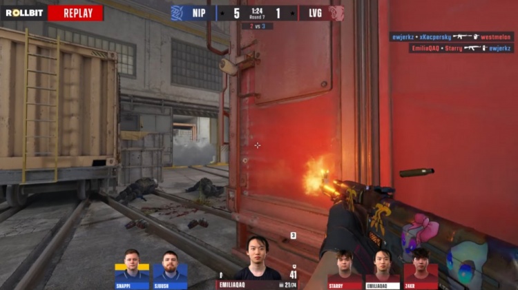 第15局LVG继续强起,内场爆弹西瓜车王双杀,Su3换掉ewjerkz,Emilia沙鹰点掉sjuush,残局r1nkle一打二轰掉三叶与Emilia,NIP13-2LVG。