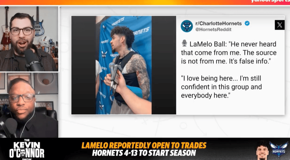 虎扑11月25日讯今日,美记KellyIko参加了节目,回应了此前拉梅洛-鲍尔对于自己关于黄蜂要交易他报道的否定: