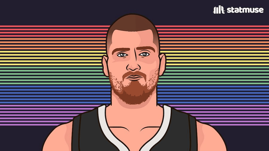掘金球员尼古拉-约基奇全场出战34分钟,9投5中,三分4中3、罚球5中4得到17分10篮板16助攻2抢断。