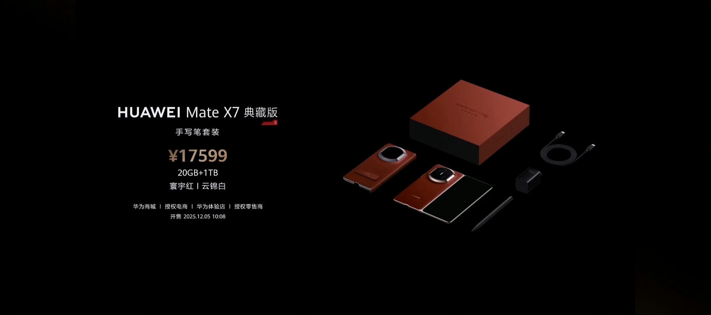 这里是华为Mate X7系列,典藏版有20GB,具体参数可以看图四,依旧是一款当之无愧的堆料大折,大嘴发布会说它绝对对得起那四个字!