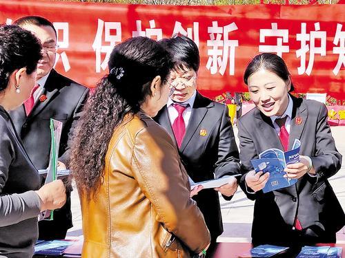 张家口中院党组书记、院长李哲(中)带队到张家口知识产权帮办中心调研。