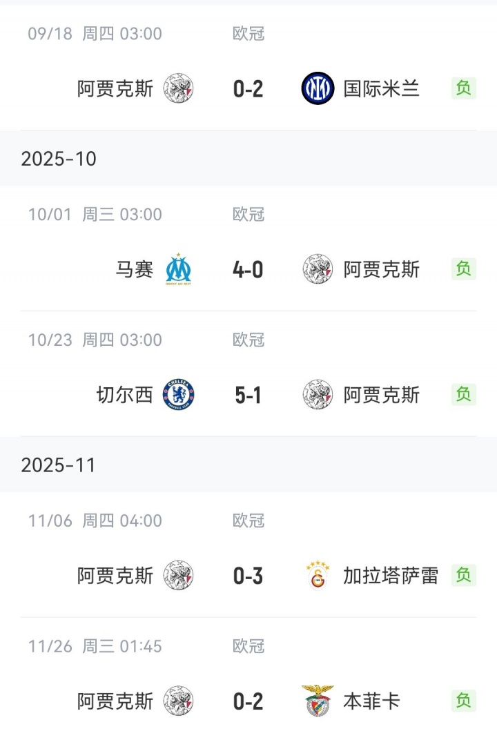 本赛季阿贾克斯在欧冠表现糟糕,前5轮比赛他们全败,丢16球仅打入1球,基本可以宣告无缘淘汰赛,他们剩下的3个对手是卡拉巴赫、比利亚雷亚尔和奥林匹亚科斯,阿贾克斯的目标就是能拿下一场胜利。