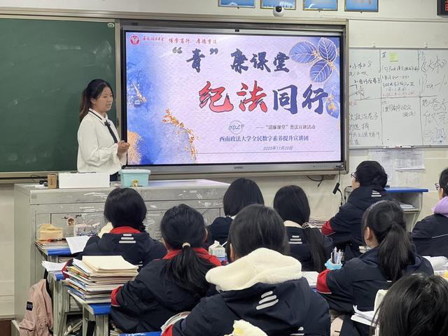 随后,西南政法大学人工智能法学院学姐结合自身学习实践,以“青少年身边的法治”为切入点展开分享。她避开晦涩的法律条文,转而围绕贴近高中生生活的主题,用典型案例,拆解法律逻辑链条,将法治思维悄然植入学生心中。