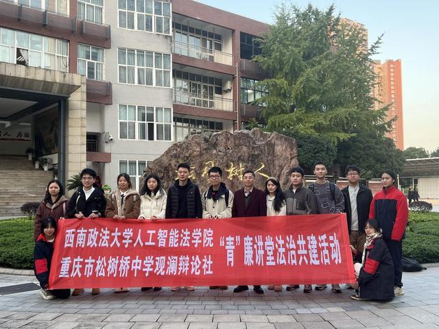 为深化法治教育进校园,搭建高校与中学协同育人桥梁,2025年11月25日下午,由西南政法大学法律职业伦理与技能教研室主任吴志伟带队,西南政法大学人工智能法学院走进重庆市松树桥中学校,与学校“观澜社”辩论社联合举办的法治共建活动,在该校高二(2)班开展。活动由“观澜社”辩论社指导老师晏顺才主持,西南政法大学人工智能法学院师生代表、“观澜社”全体成员及高二(2)班学生代表共同参与。