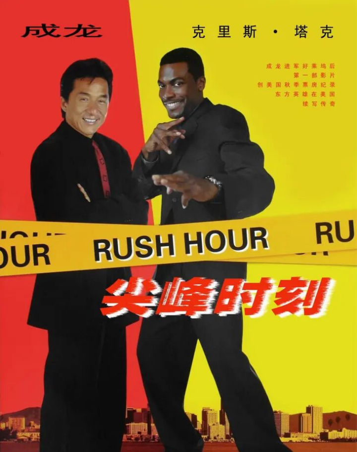 《尖峰时刻》系列电影讲述了洛杉矶警探詹姆斯·卡特(克里斯·塔克饰)和香港的李警官(成龙饰)这对搭档的故事。两人演绎了“水土不服”喜剧——“水土”便是对方的文化。当然,片中还有大量打斗场面,塔克奉上美式拳脚混战,成龙则大秀令人捧腹的武打招式。