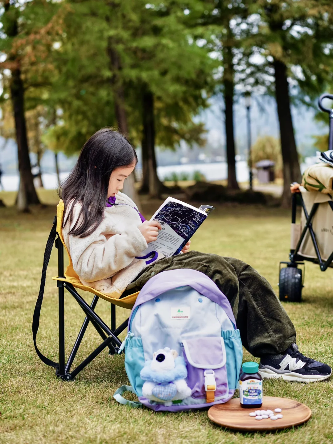 光靠户外还不够,日常还会给他吃2粒健美生儿童叶黄素,因为叶黄素是咱们眼睛黄斑区的重要营养成分,可以过滤有害蓝光,但人体无法自己合成,而且会随着年龄增长而流失,所以我也是早早的给我家娃安排上了!