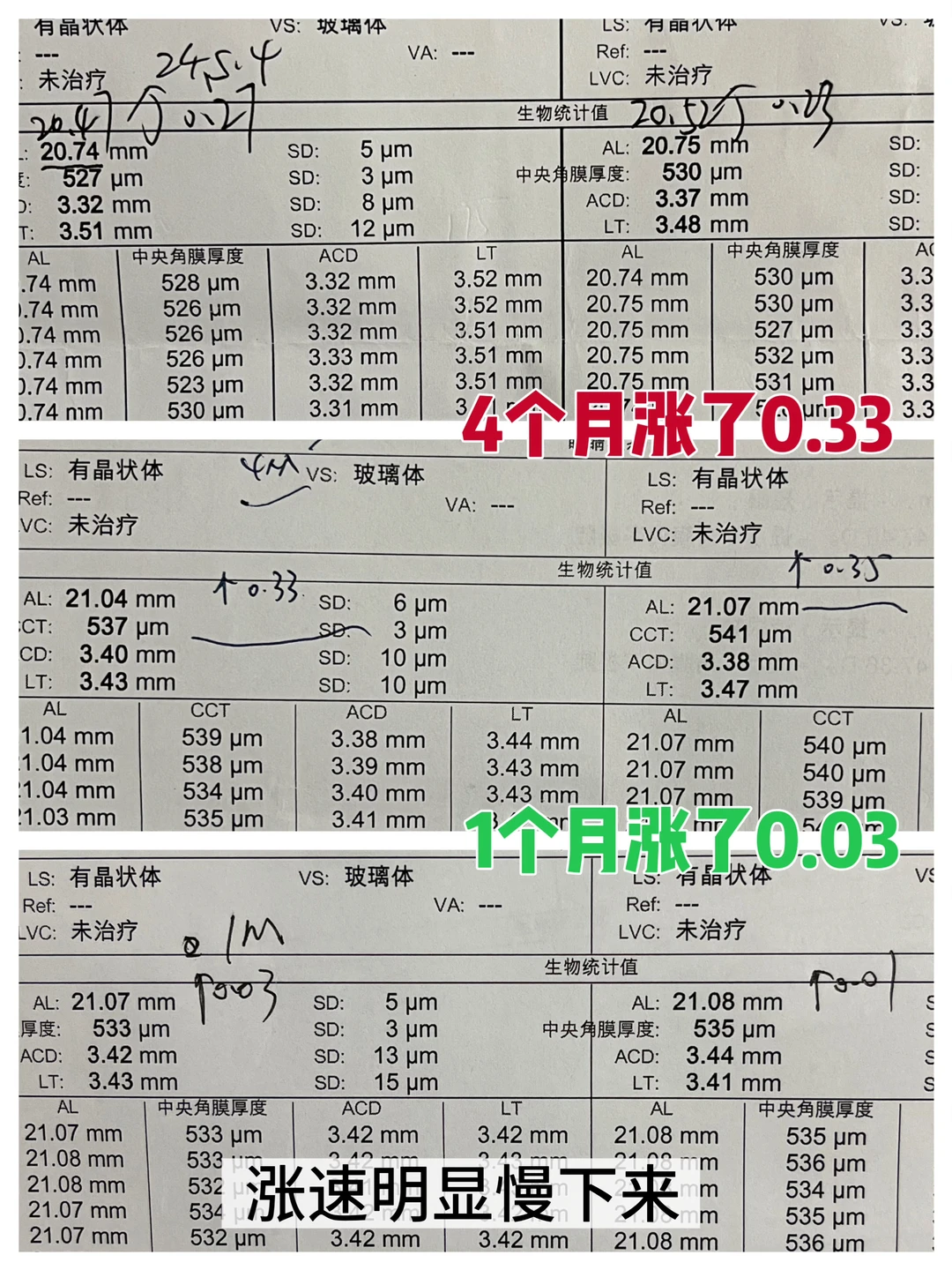 半年复查视力,1月到4月三个月眼轴涨了 0.33,尤其我们家还是高曲度,要是一直这么涨下去真的要慌了。