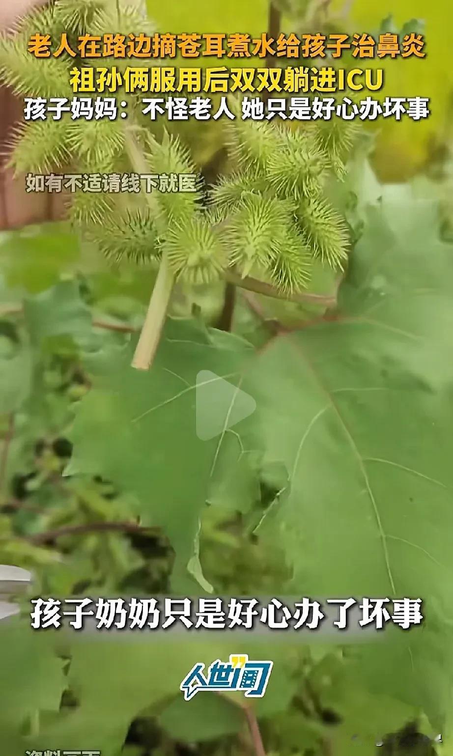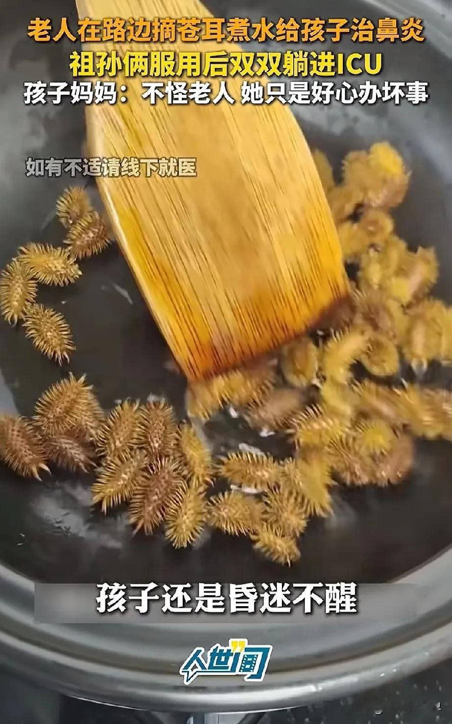 苍耳子老家到处都是,大家可能也听过苍耳子能治鼻炎,我之前还想回老家时摘一点。 没想到看见一新闻把我吓一跳,河南开封。一位奶奶为给孙子治疗鼻炎,在路边摘了苍耳子煮水给孩子喝,没想到两人住进了icu。 目前9岁的孩子还在昏迷、仅靠机器和药物维持生命,孩子母亲哭到绝望。孩子全身插满管子、仅靠机器与药物维持生命。医生告知,孩子随时可能离去,也可能会成为植物人,这残酷的现实让她心如刀绞。 事件的起因是奶奶的一番“好心”。孩子从小饱受鼻炎困扰,奶奶心疼不已,听闻苍耳子煮水能治鼻炎,便从路边采来苍耳子,煮水给孩子喝,连着两天,每天给孩子喂一碗,自己也跟着喝。起初并无异样,可到了第三天,孩子突然身体不适,昏迷不醒,紧急送医后,被诊断为多器官衰竭,医院频频下达病危通知书。 家人询问老人是否喝时,老人却因怕花钱选择隐瞒,直至病情加重才被送医。即便身处这般绝境,这位母亲强忍着剧痛,哭着恳请大家:“别责怪奶奶,她是好心,我们不埋怨,她年纪大了,经不住打击,要是孩子救不回来,不能再让老人承受不住。” 苍耳子虽是常见中药材,能散风寒、通鼻窍,可未经炮制毒性极强,误服易头晕、恶心,严重时会致多脏器衰竭甚至夺命。成年人误服两克就可能有生命危险,孩子更是如此,致死量更低。而且,中药炮制、剂量把控极为严谨,自行采集、煮服苍耳风险巨大。 这一桩桩悲剧警示我们:治病务必前往正规医院,谨遵医嘱,偏方千万信不得,孩子的生命禁不起丝毫侥幸,莫让“好心”酿大祸。