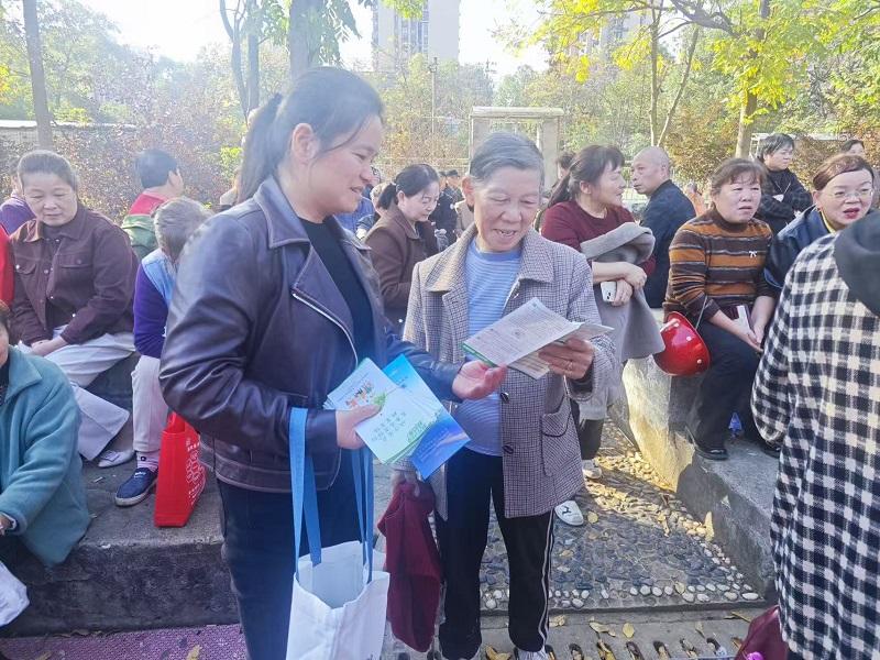 活动期间,工作人员先后走进鹤岭广场、鹤岭文化宫、长安村文化活动广场等群众聚集场所,通过设置宣传咨询台、悬挂主题横幅、发放政策手册等方式,并围绕城乡居民关心的热点问题展开针对性讲解。针对城乡居民养老保险提档补缴政策,工作人员详细解读了缴费档次调整、补缴流程及待遇提升等关键内容,帮助居民算清“养老账”。针对灵活就业人员,重点推广线上参保缴费指南,现场演示“湘税社保”APP操作步骤,指导群众足不出户完成参保登记、保费缴纳。