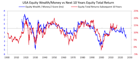但如果观察未来十年回报率的关联性,当你身处这种环境时,长期回报率往往会非常低。