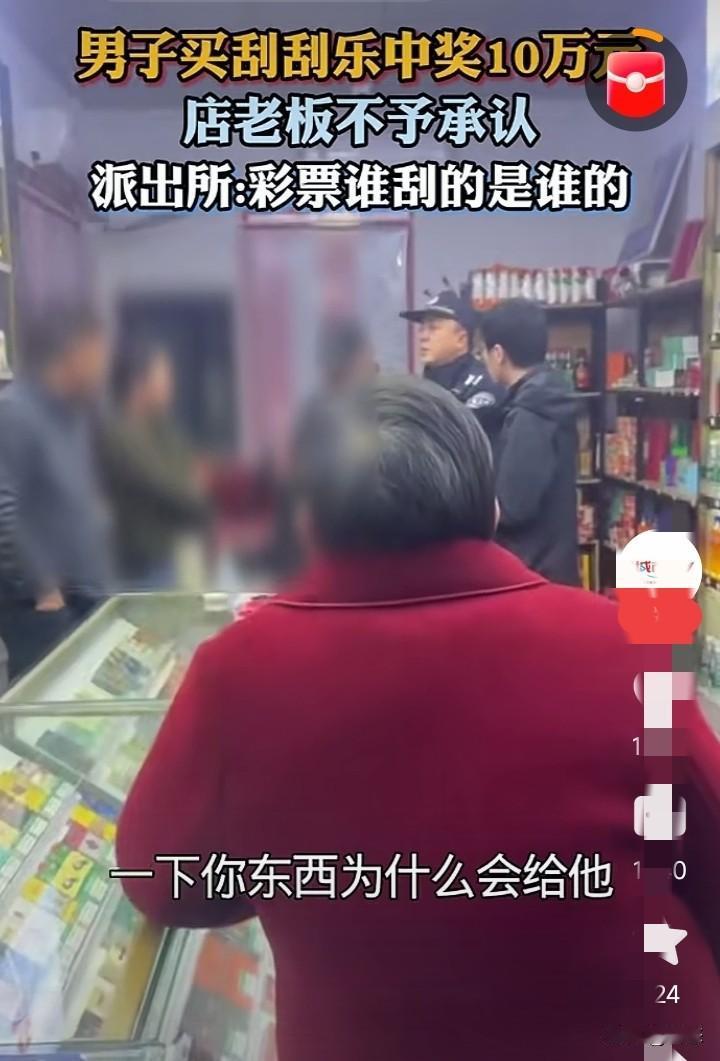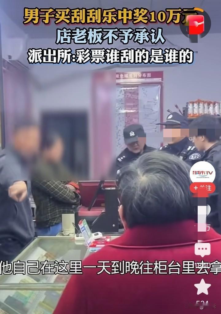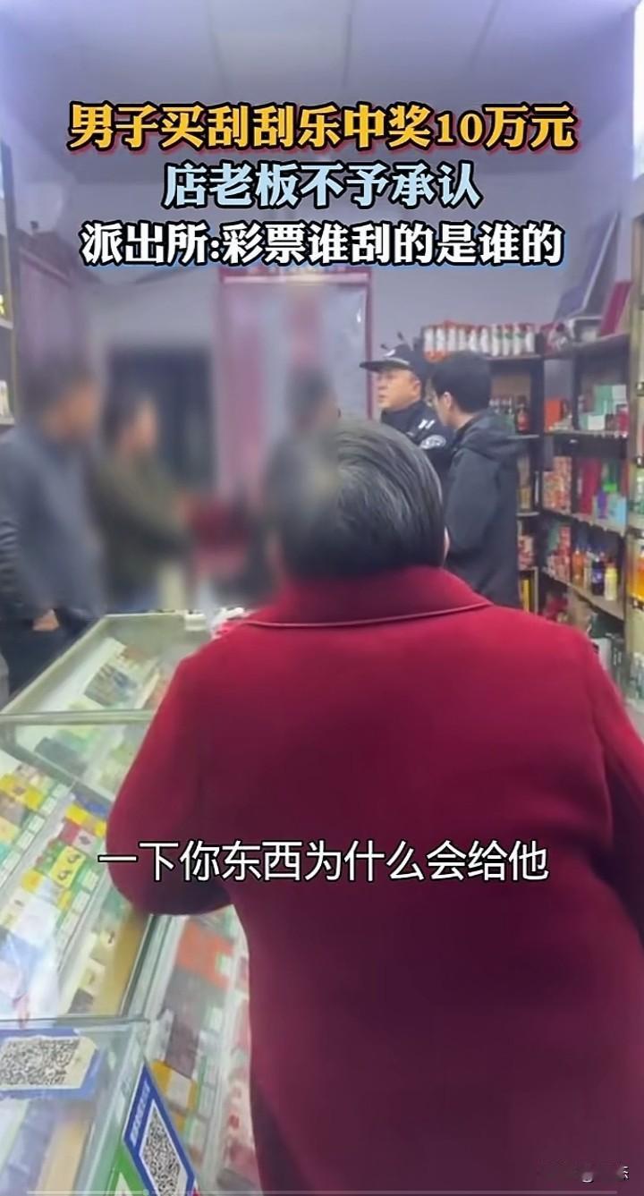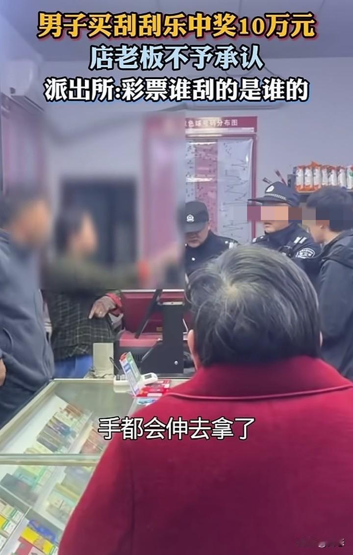 闹大了?一男子买刮刮乐,没想到刮中了10万元的大奖。男子刮出大奖,让人气愤的事,老板居然不承认。男子只能报警处理,民警来到店里面了解情况,面对民警,老板称彩票是男子伸手拿 的,他自己一天到晚在柜台里面拿。遇到这种不讲诚信的彩票店老板,有了一次,估计都没人去了。你不同意,客人敢拿吗? 民警称,谁刮的彩票就是谁的。 看到这,这老板没有格局,中奖了应该是高兴的事,为什么不承认呢?想不明白,这样来买的人肯定会增加。 你们怎么看呢?老板为什么不承认?如果是你,怎么证明是自己刮中的呢?