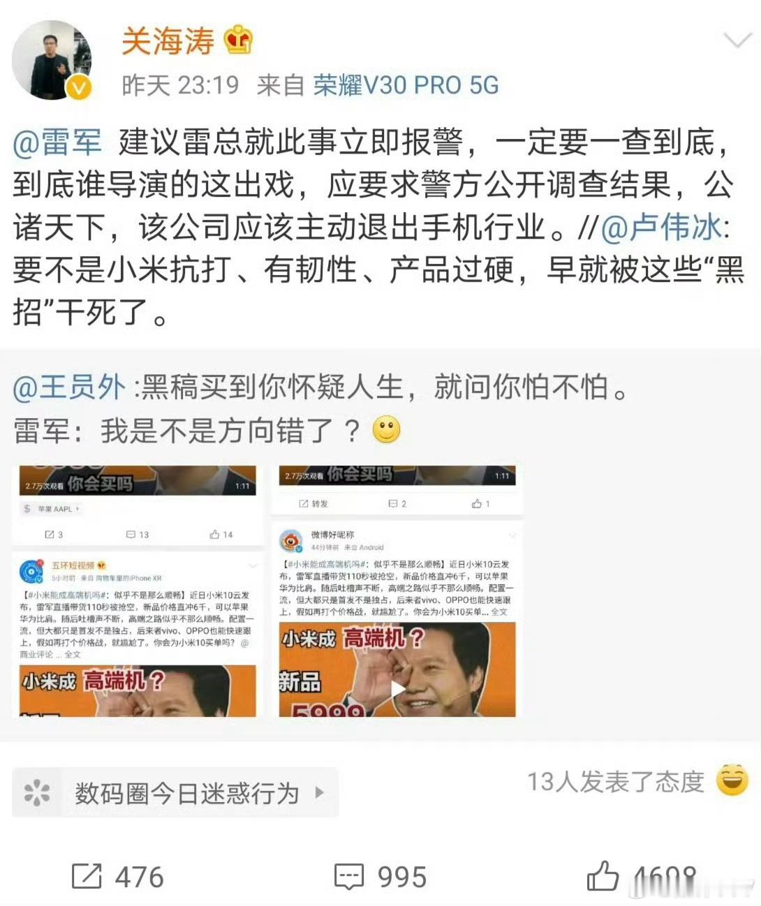 最近的公关人事变动和市场部的新入职都成为了舆论的焦点,从小米徐洁云到荣耀关海涛,如今的手机市场还是风起云涌,只不过一些跳得老高的脑残粉如今却跳不动了而已,例如王员外,曾经最忠实的粉丝……