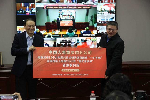 第1眼TV-华龙网讯(曹妤实习生李星妮)11月25日,乡村振兴重点帮扶区县困难“一户多残”家庭残疾人“渝快保”捐赠仪式在渝举行。中国人寿重庆市分公司向全市14个国家、市级乡村振兴重点帮扶区县困难“一户多残”家庭残疾人捐赠2026年“重庆渝快保”普惠款保险,为残疾人家庭再添一道抵御重大疾病风险的“坚实防线”。