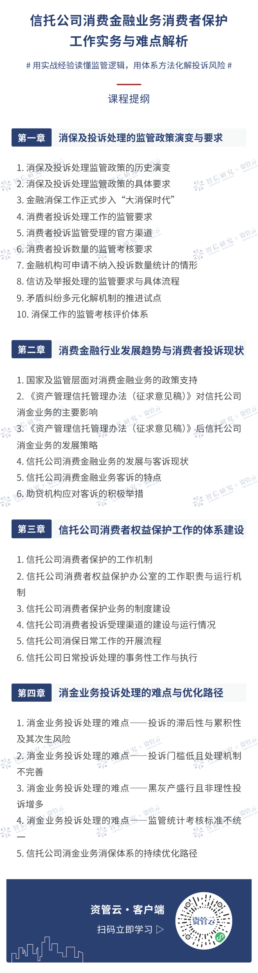 深度讲解监管趋势:系统梳理消保与投诉处理相关政策的演进脉络,精准解读“大消保时代”下信托机构的责任要求