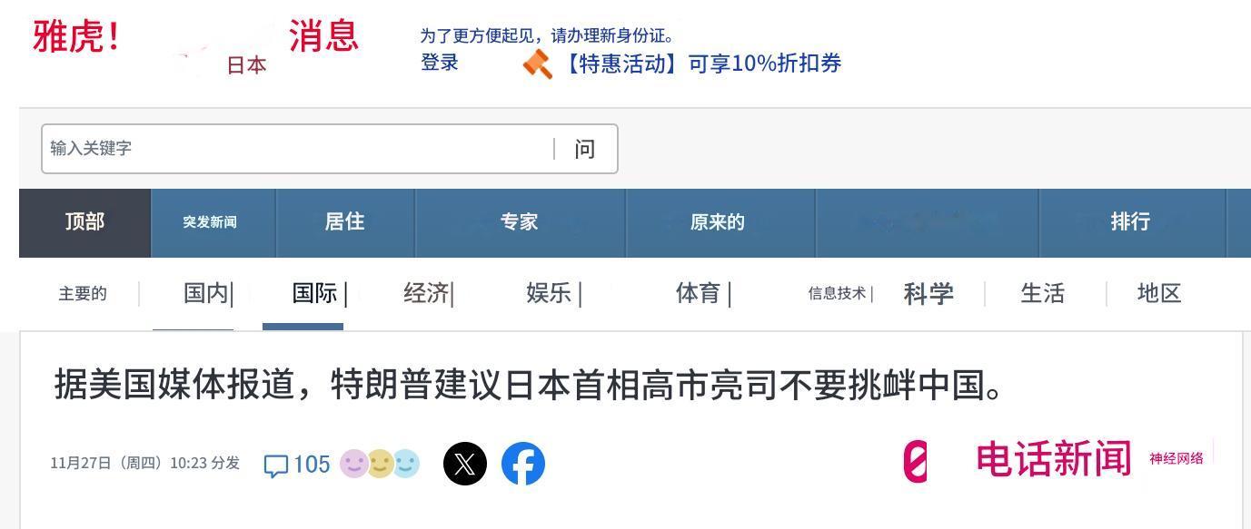 日媒援引华尔街日报的报道,特朗普在11月25号与高市早苗的电话中建议高市早苗不要挑衅中国。美国和日本官员称,特朗普的建议很温和,并没有向高市早苗施压要求其收回相关言论。华尔街日报还援引一位美国消息人士的话说,特朗普了解高市早苗在国内面临的政治困境,也意识到她可能无法完全收回挑衅言论。热点观点烽火问鼎计划高市必须撤回言论
