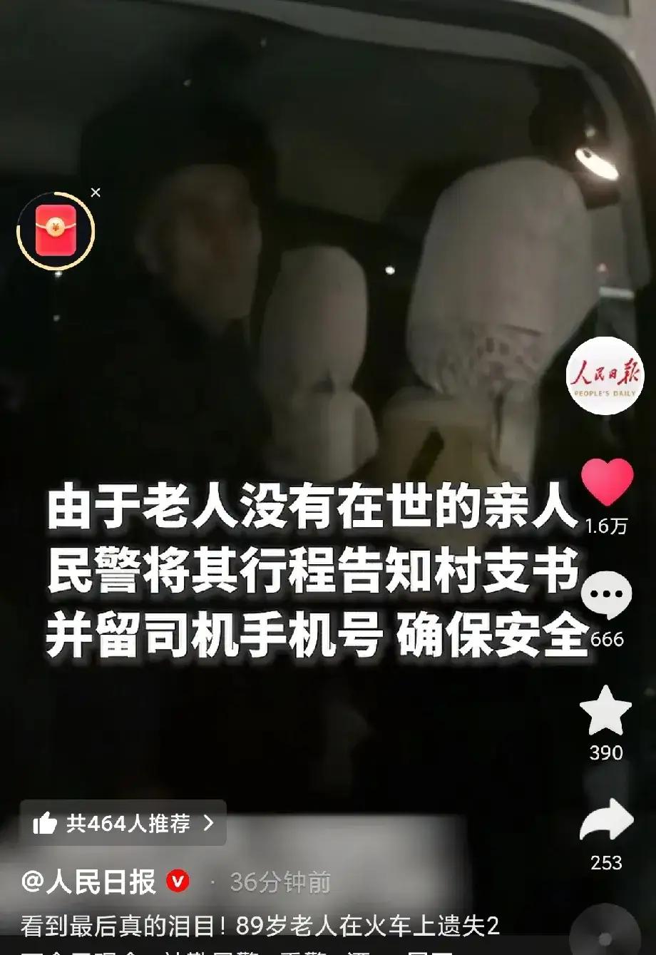 泪目了!89岁老人向民警求助,出门到和田看病,结果攒了52年的2万元现金都丢在了火车站,谁料,民警想联系他家人,竟意外得知他没有一个亲人了,最后只好联系到了村支书。民警接到报案后,立马联系到火车站,最后在老人铺位的被子下找到了钱,数了数,一共有21800元。 在新疆我们捡到都会归还失主的,新疆人不做顺手牵羊的事! 看评论网友有很多担心。大家可能不了解驻村干部的意义,可以看看相关的文章。 只要在新中国,这样的孤寡老人才能得到这样无微不至的照顾,放在世界其他任何地方,早就冻饿而死了! 谢谢善意帮助老人家的所有好心人!祝所有帮助过老人家的好心人一生平安![比心] 在美国大概率就是街上的流浪汉,自生自灭,在中国不可能出现这么没有人情味的场景,再穷的人也有自己的房子,有自己的家。 人老就够可怜了,再加上没亲人没钱就更可怜了,希望民生福利多观注这些老人吧!